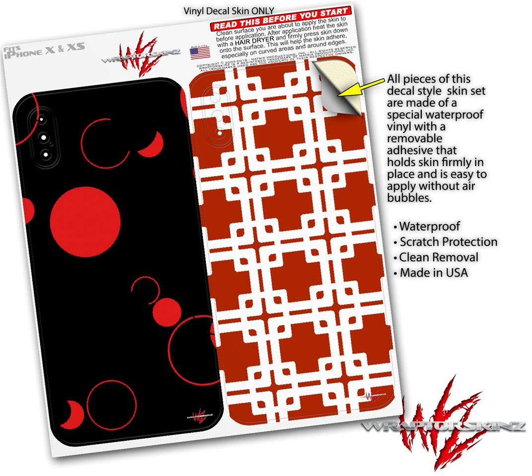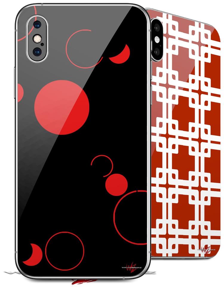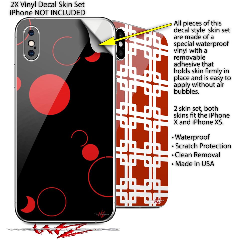 2 Decal style Skin Wraps set compatible with Apple iPhone X and XS Lots of Dots Red on Black