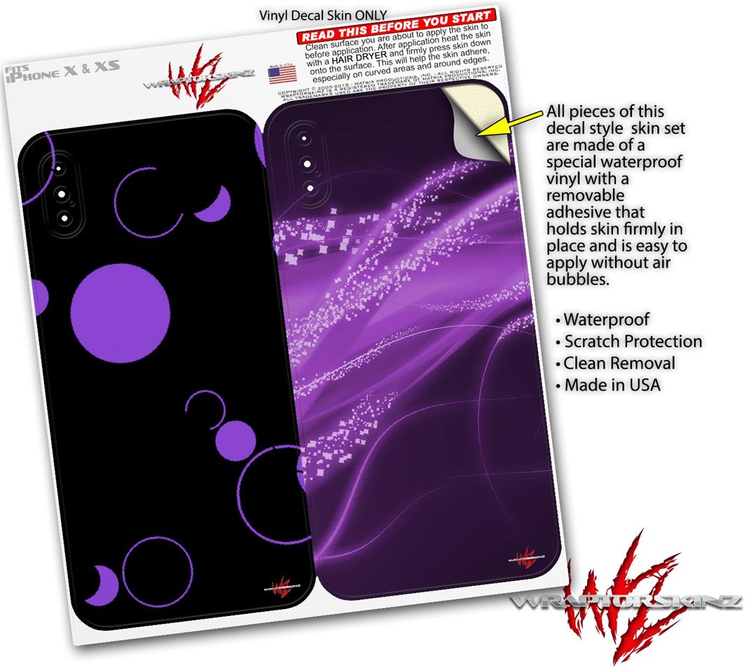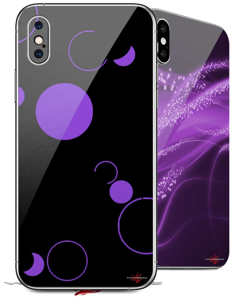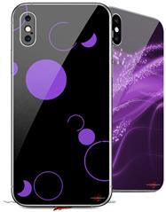 2 Decal style Skin Wraps set compatible with Apple iPhone X and XS Lots of Dots Purple on Black