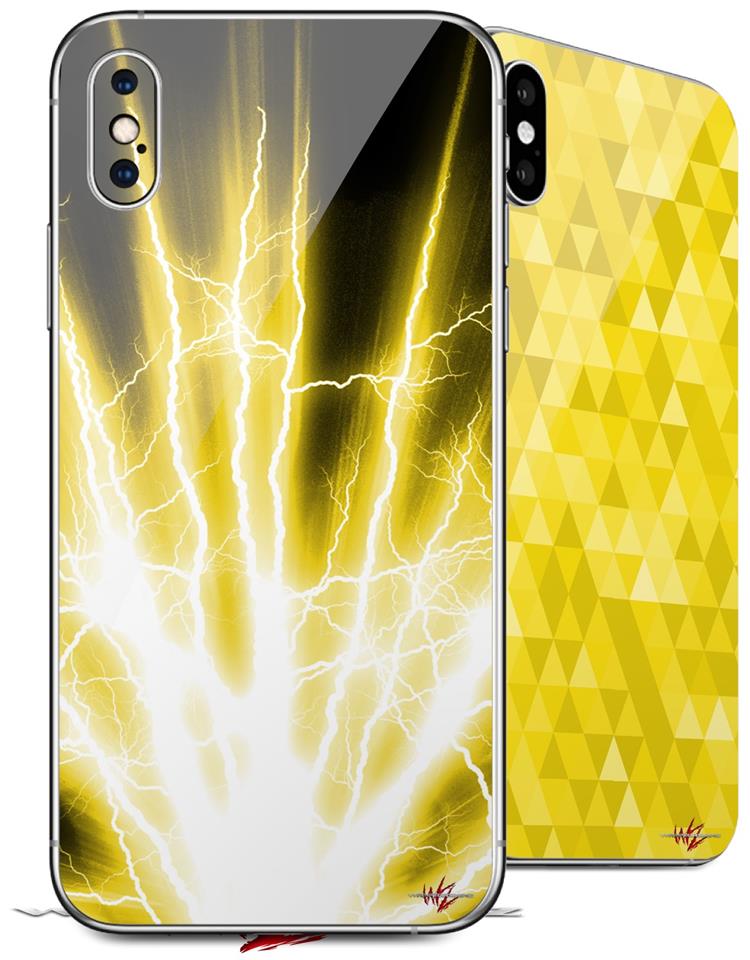 2 Decal style Skin Wraps set compatible with Apple iPhone X and XS Lightning Yellow