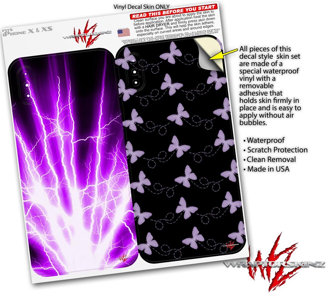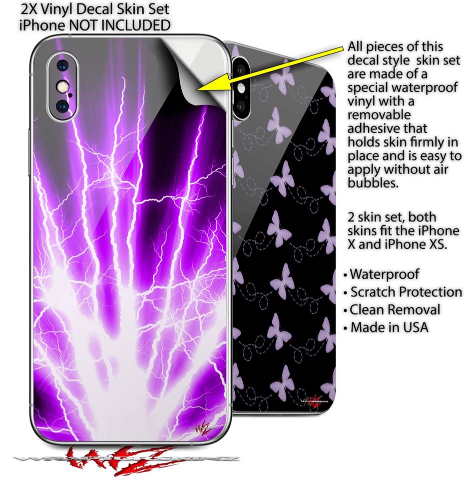 2 Decal style Skin Wraps set compatible with Apple iPhone X and XS Lightning Purple