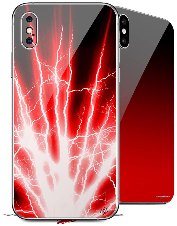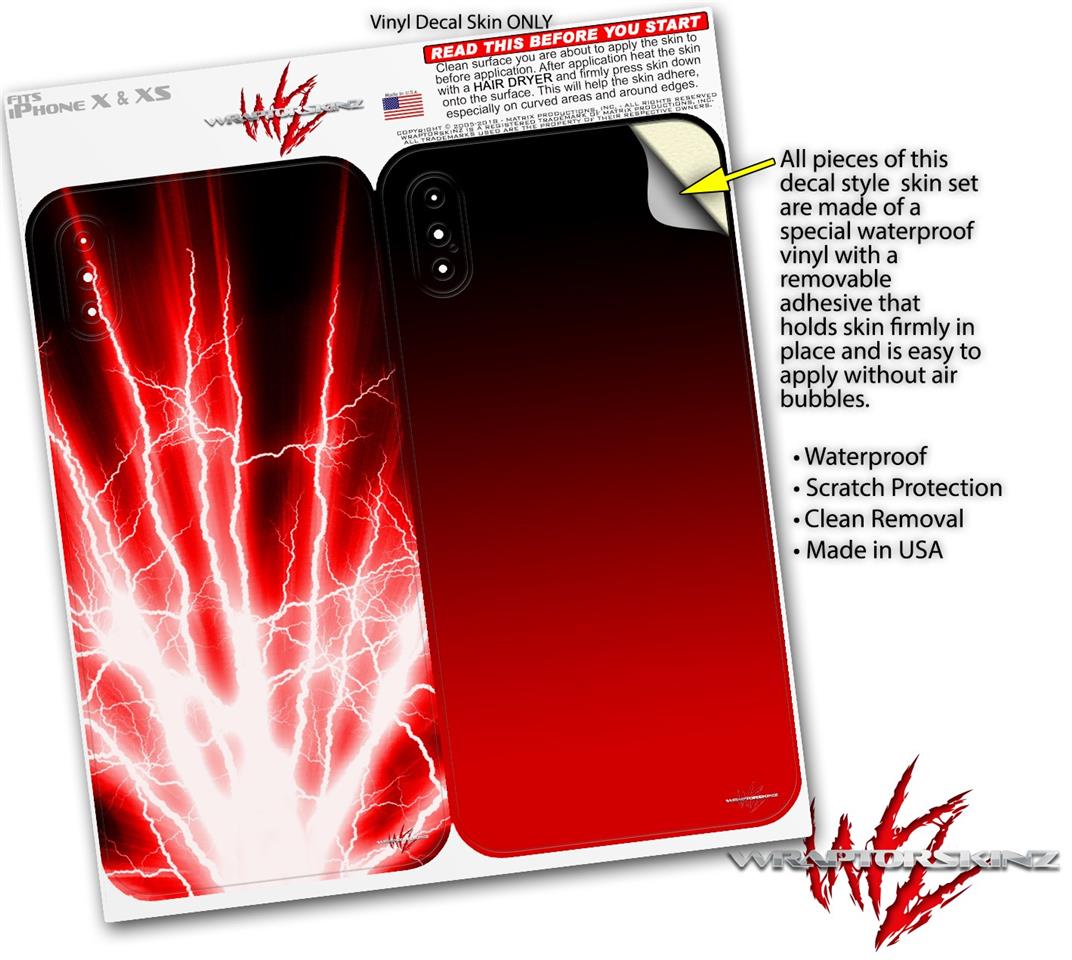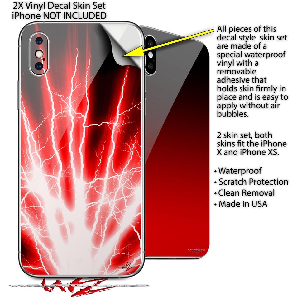 2 Decal style Skin Wraps set compatible with Apple iPhone X and XS Lightning Red