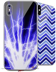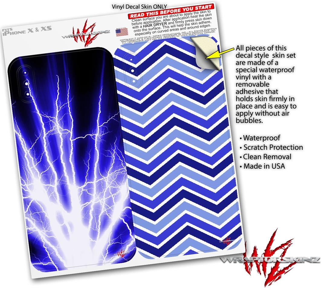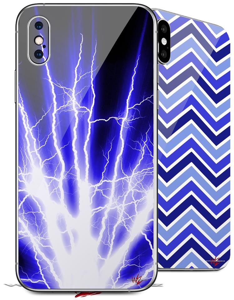 2 Decal style Skin Wraps set compatible with Apple iPhone X and XS Lightning Blue