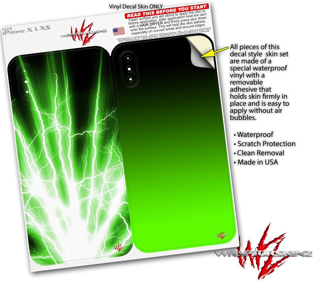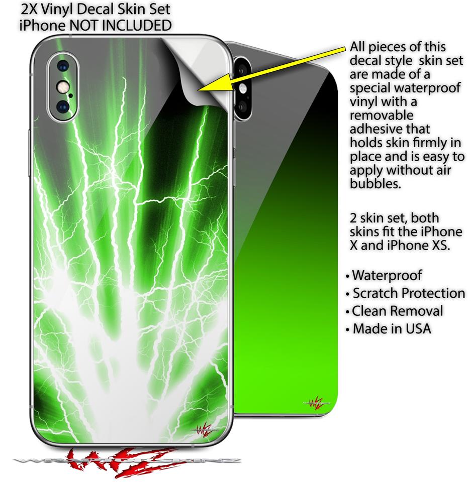 2 Decal style Skin Wraps set compatible with Apple iPhone X and XS Lightning Green