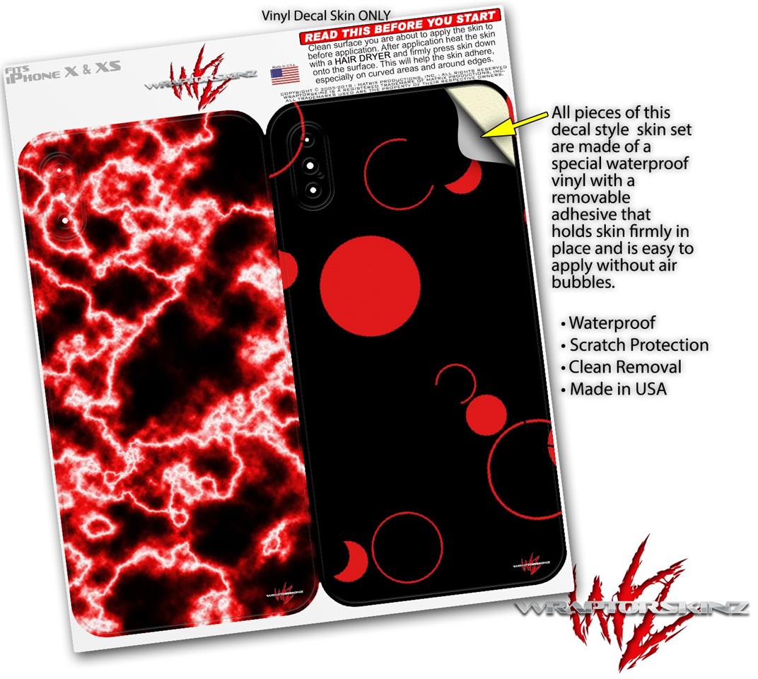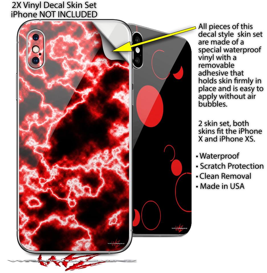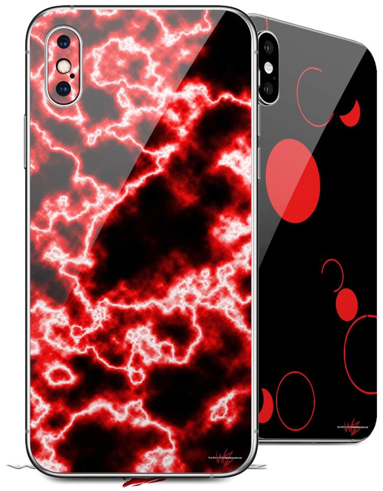 2 Decal style Skin Wraps set compatible with Apple iPhone X and XS Electrify Red