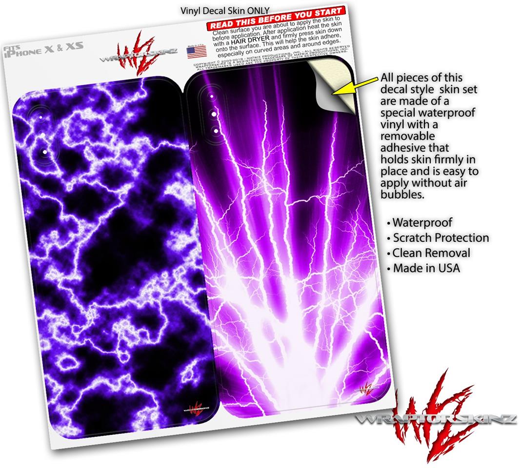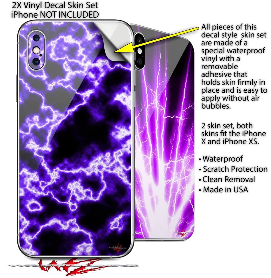 2 Decal style Skin Wraps set compatible with Apple iPhone X and XS Electrify Purple