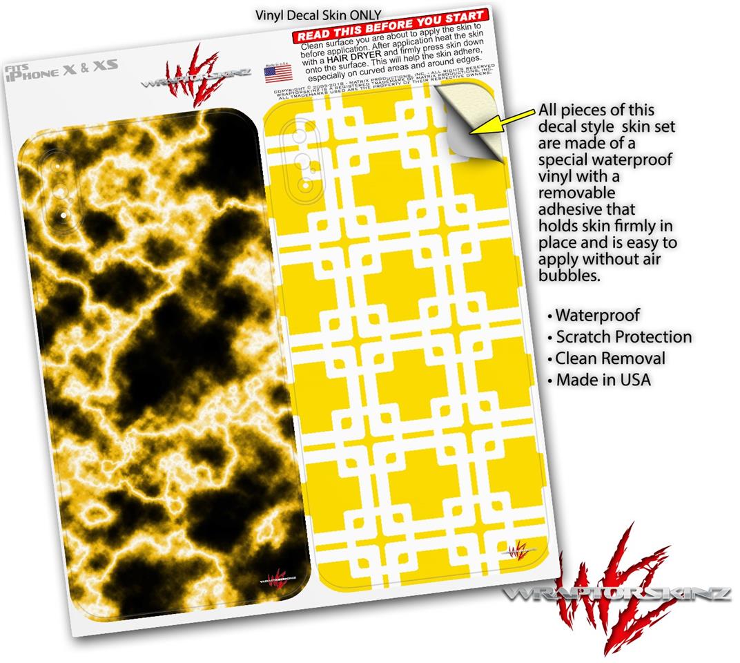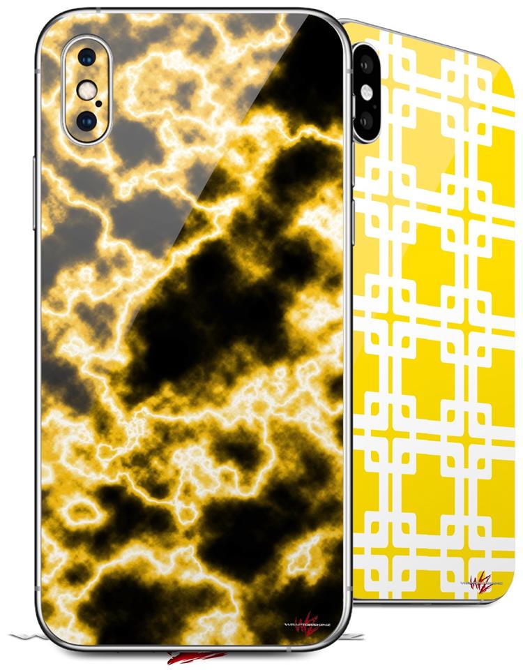 2 Decal style Skin Wraps set compatible with Apple iPhone X and XS Electrify Yellow