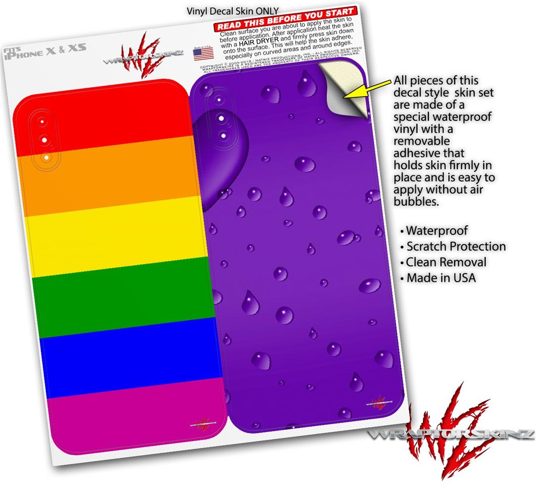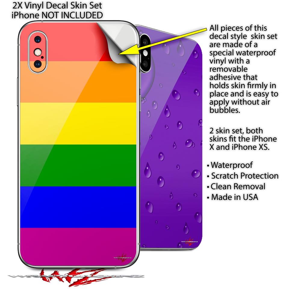 2 Decal style Skin Wraps set compatible with Apple iPhone X and XS Rainbow Stripes