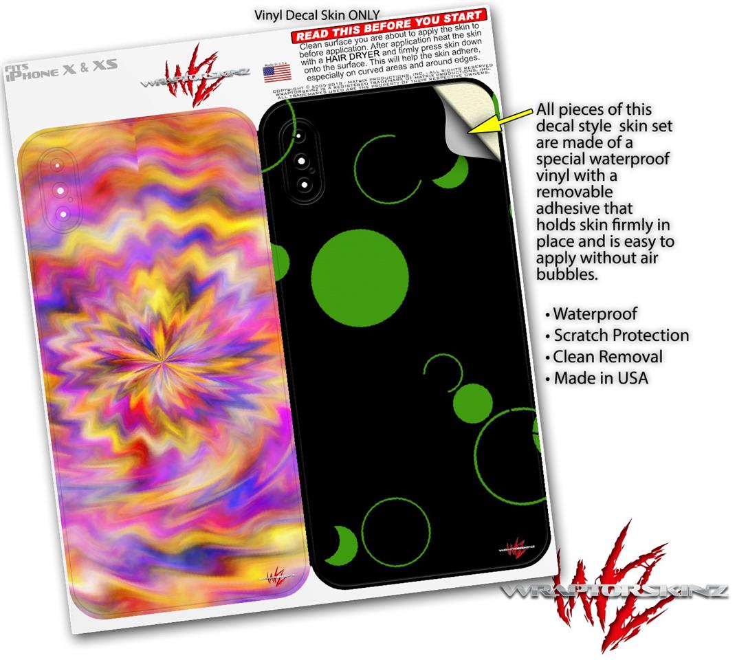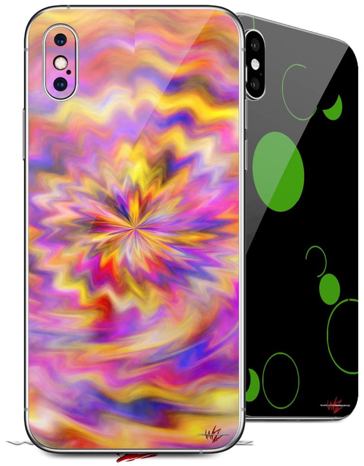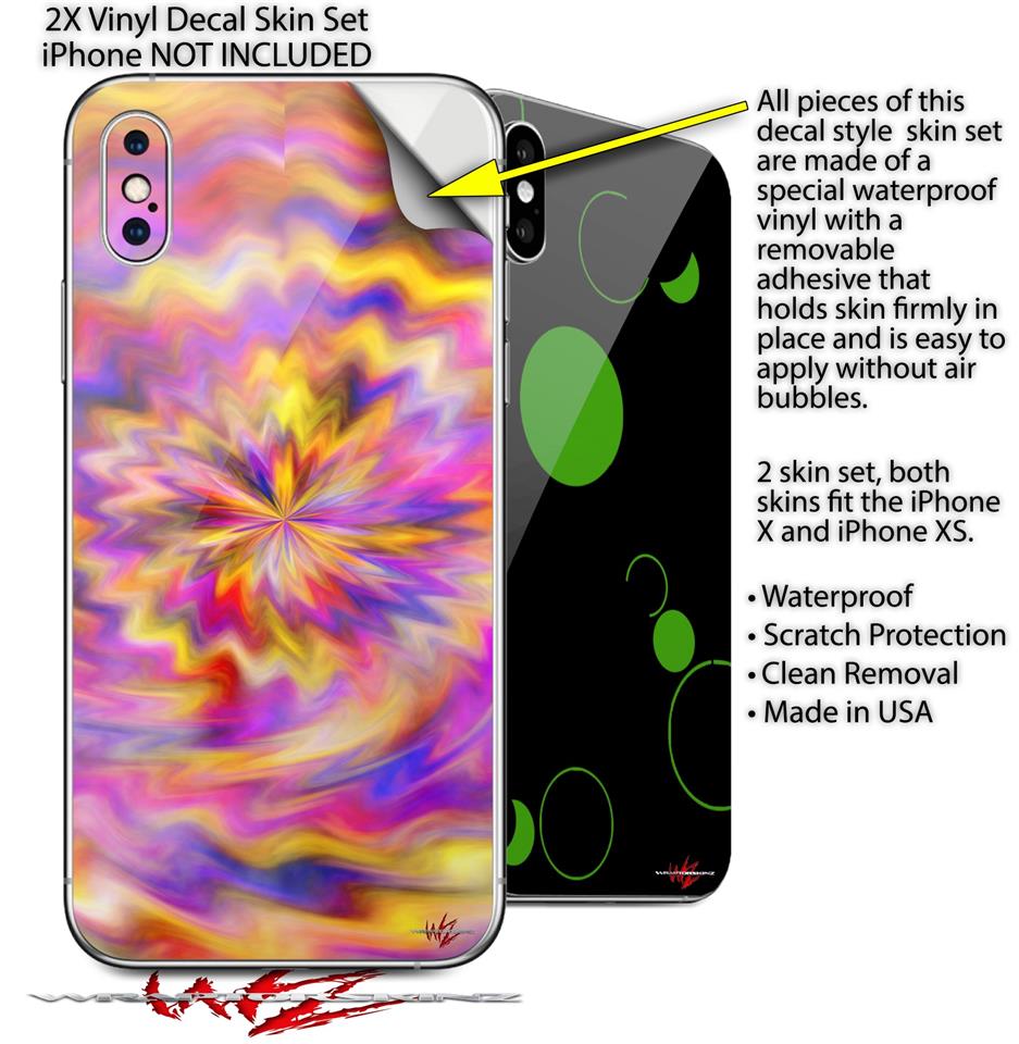 2 Decal style Skin Wraps set compatible with Apple iPhone X and XS Tie Dye Pastel