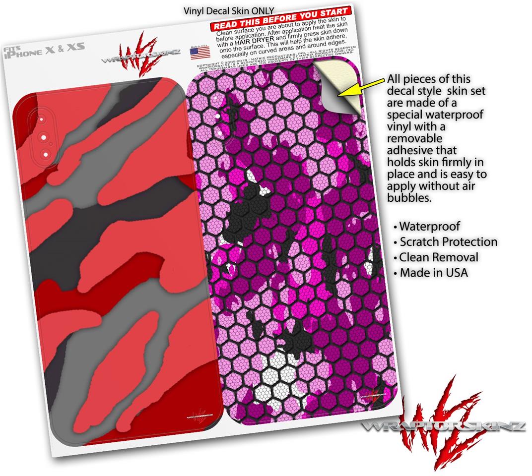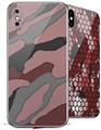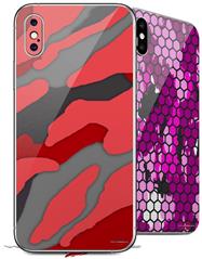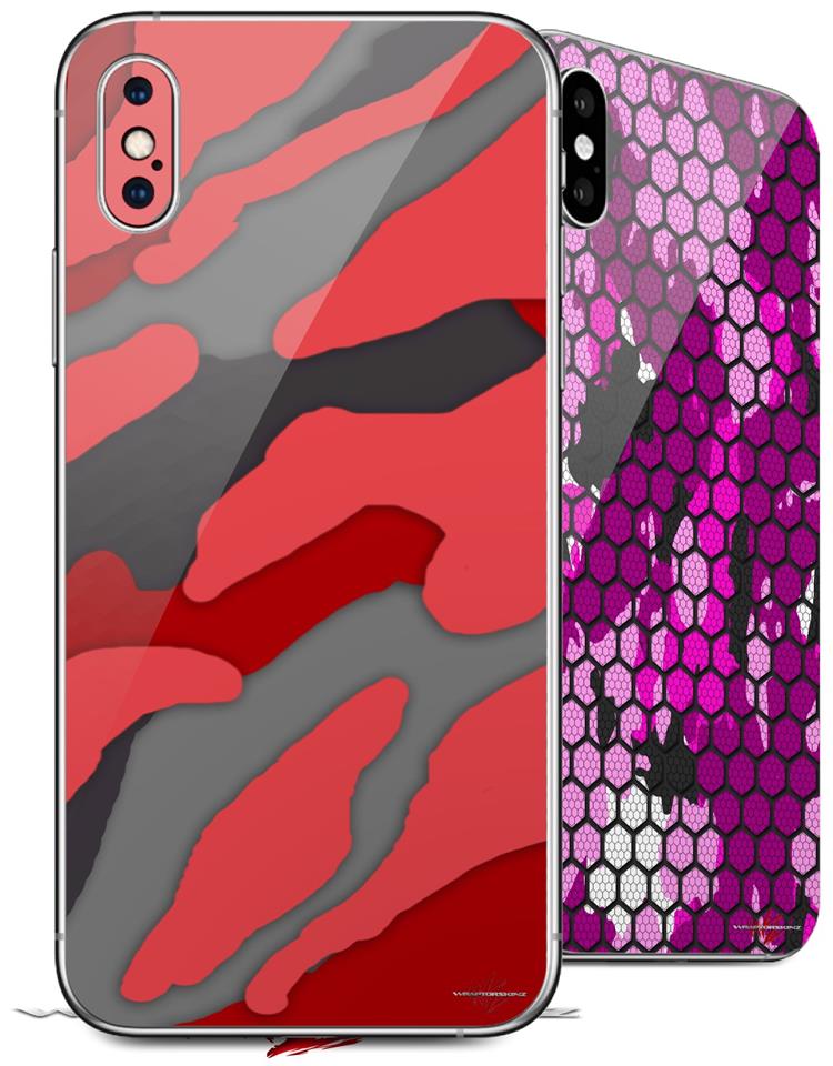 2 Decal style Skin Wraps set compatible with Apple iPhone X and XS Camouflage Red
