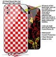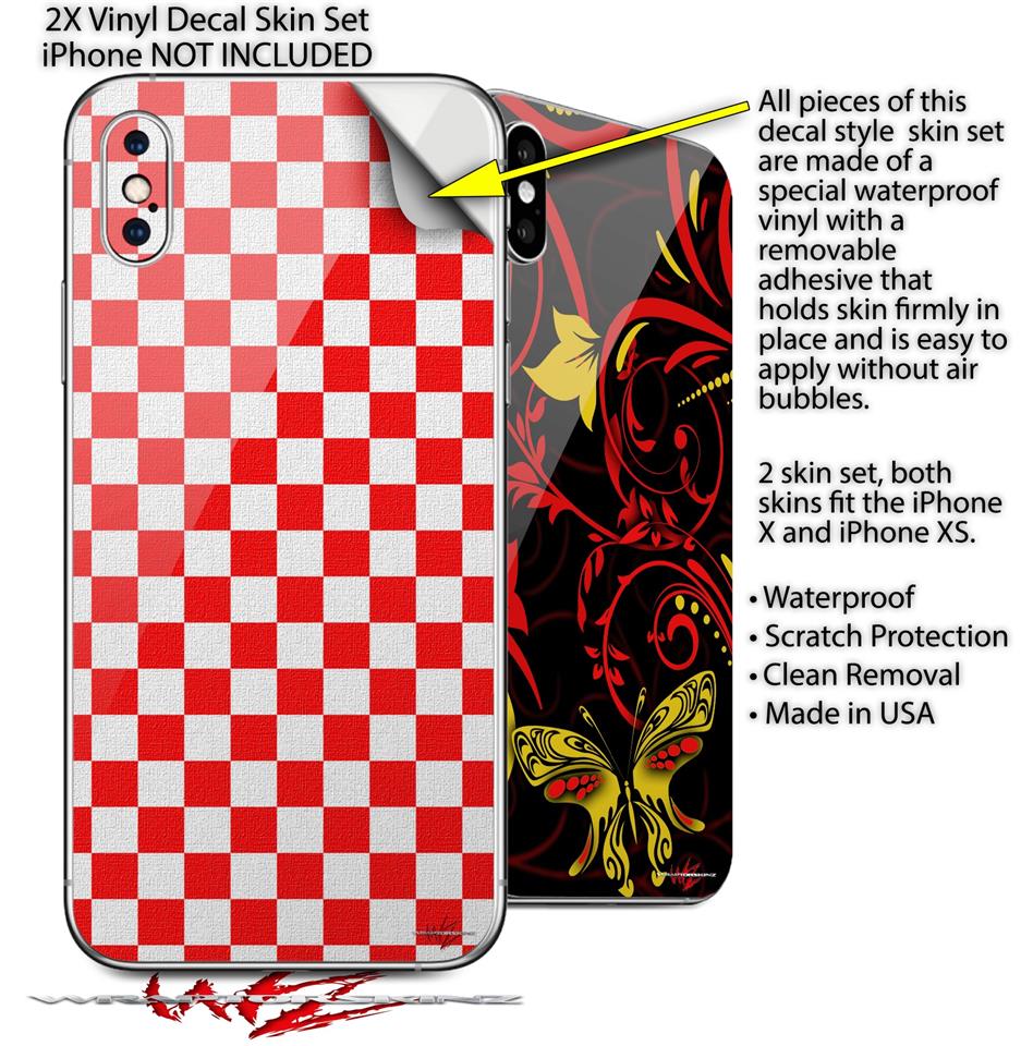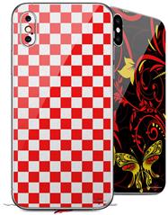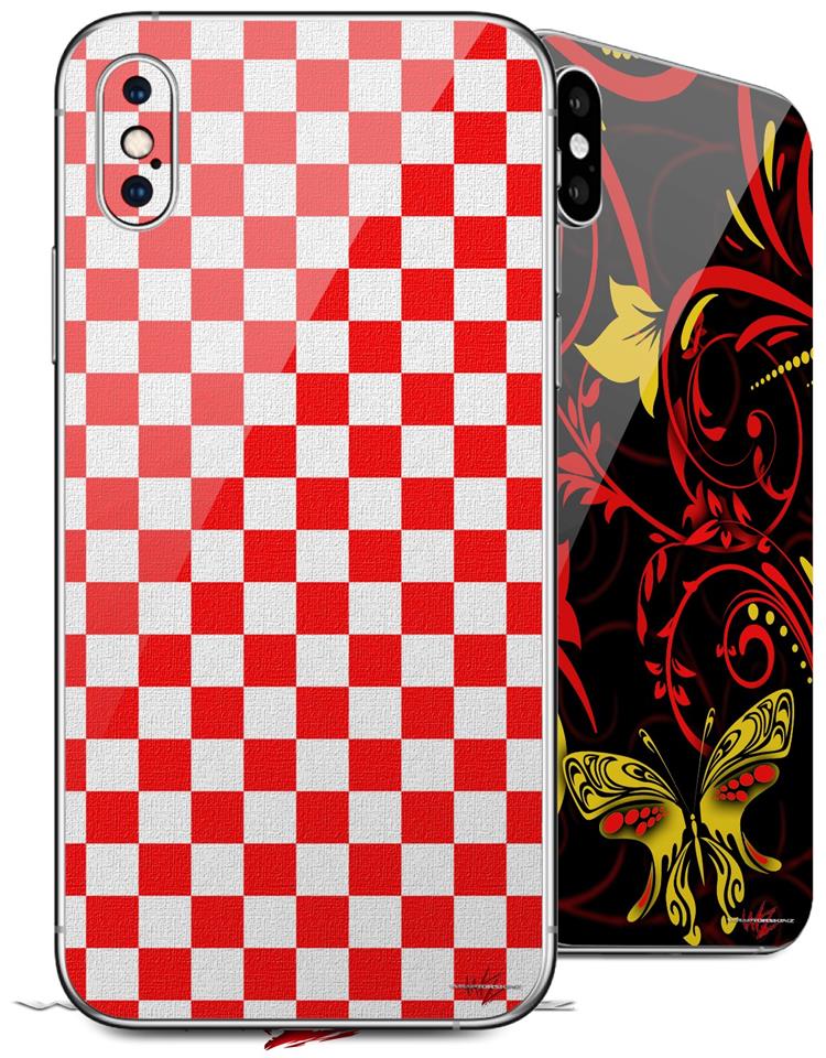2 Decal style Skin Wraps set compatible with Apple iPhone X and XS Checkered Canvas Red and White