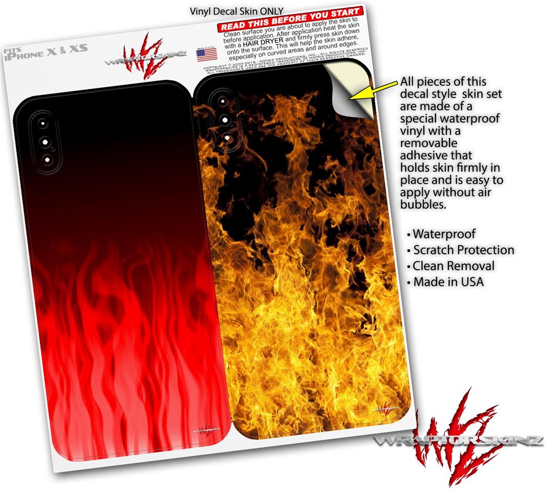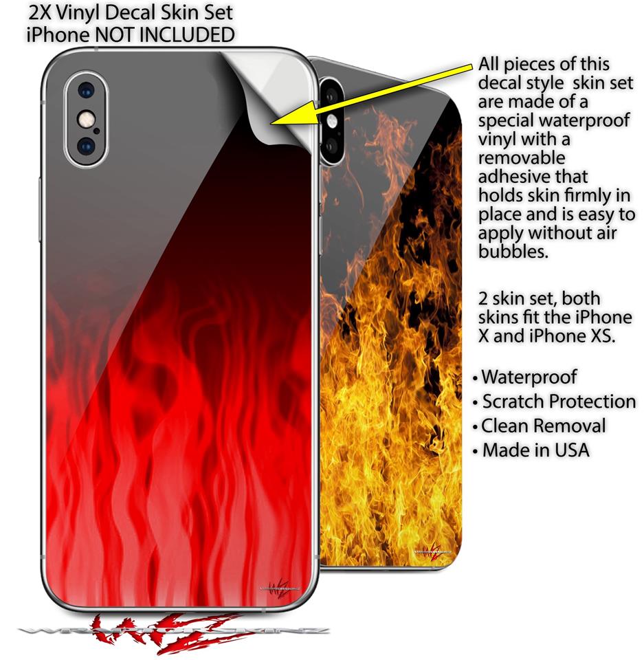 2 Decal style Skin Wraps set compatible with Apple iPhone X and XS Fire Red