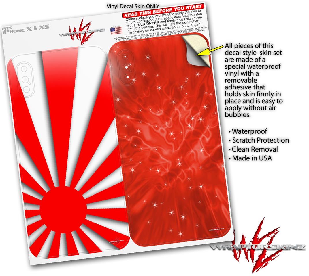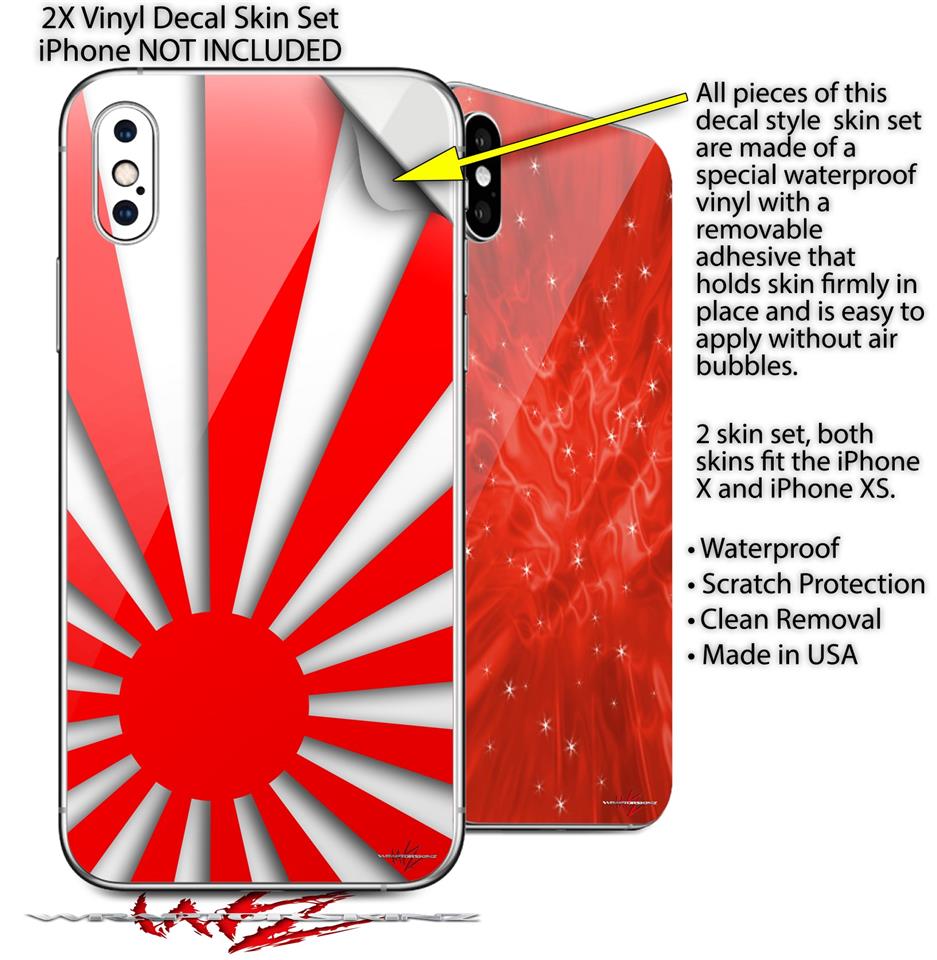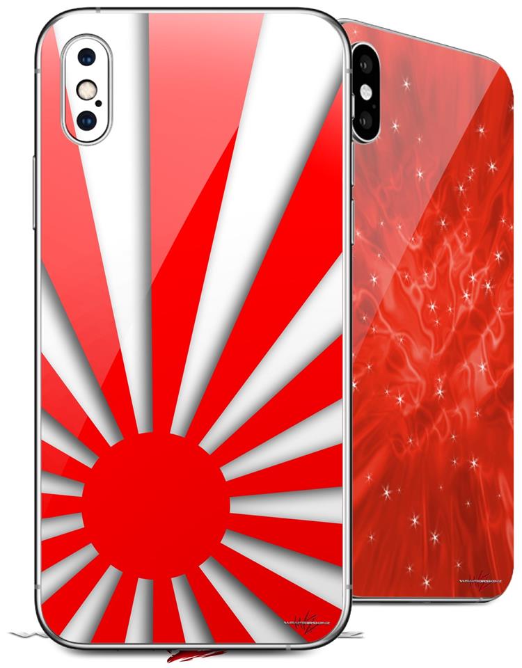 2 Decal style Skin Wraps set compatible with Apple iPhone X and XS Rising Sun Japanese Flag Red