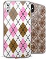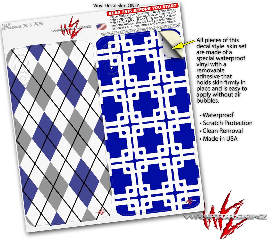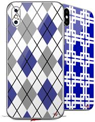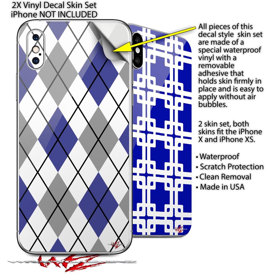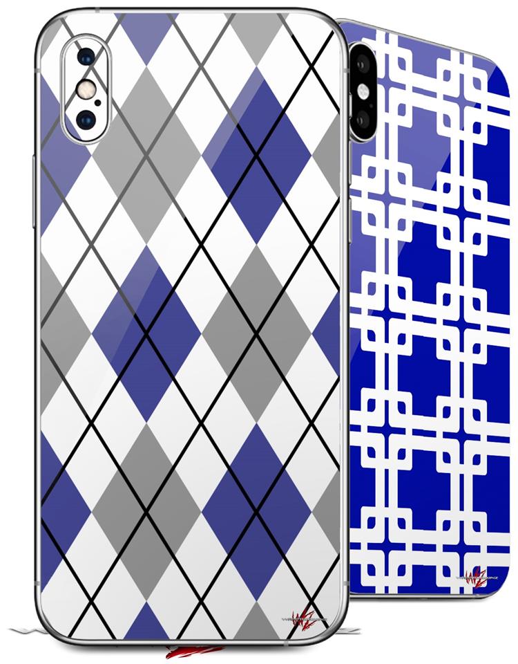 2 Decal style Skin Wraps set compatible with Apple iPhone X and XS Argyle Blue and Gray