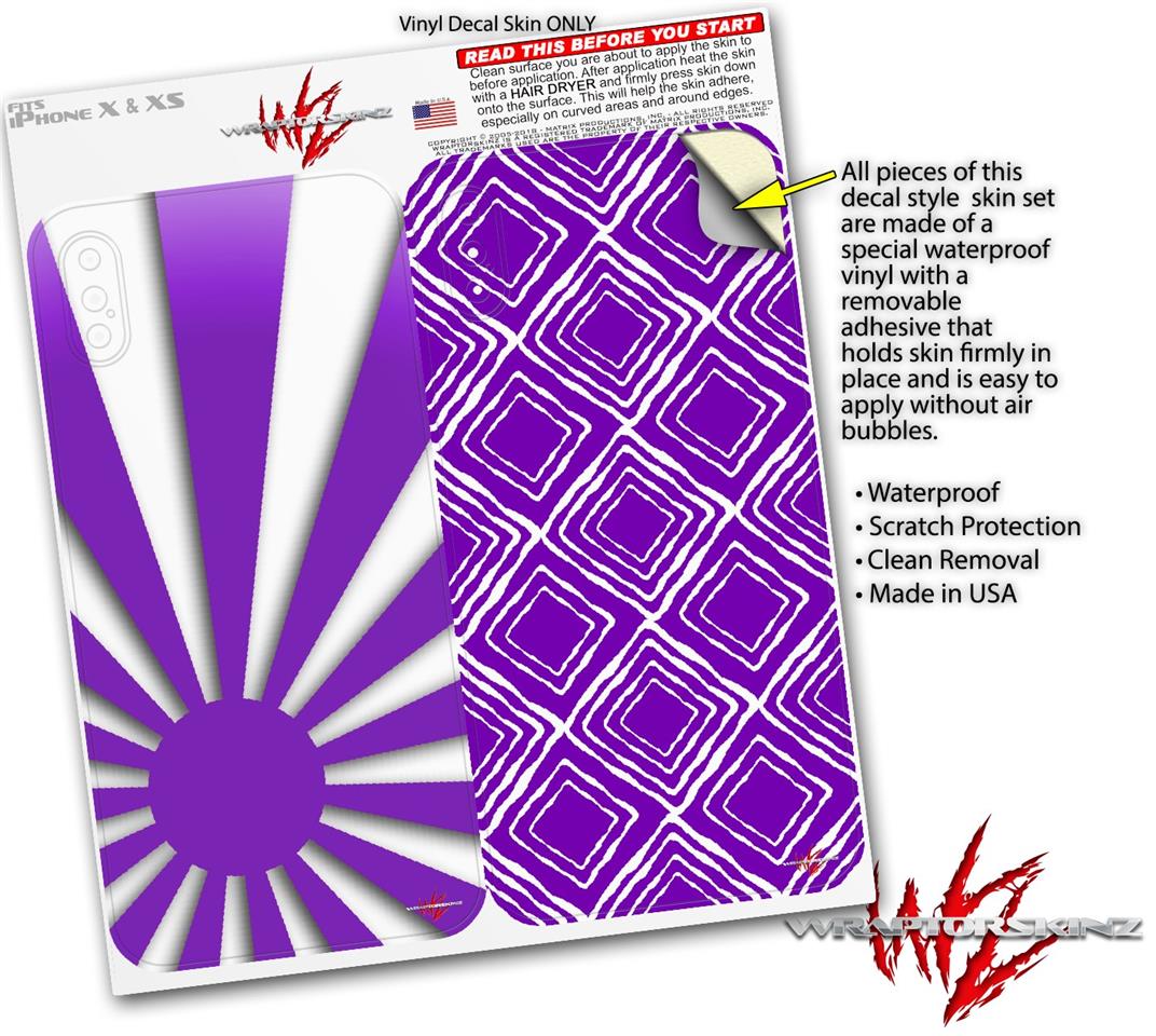 2 Decal style Skin Wraps set compatible with Apple iPhone X and XS Rising Sun Japanese Flag Purple