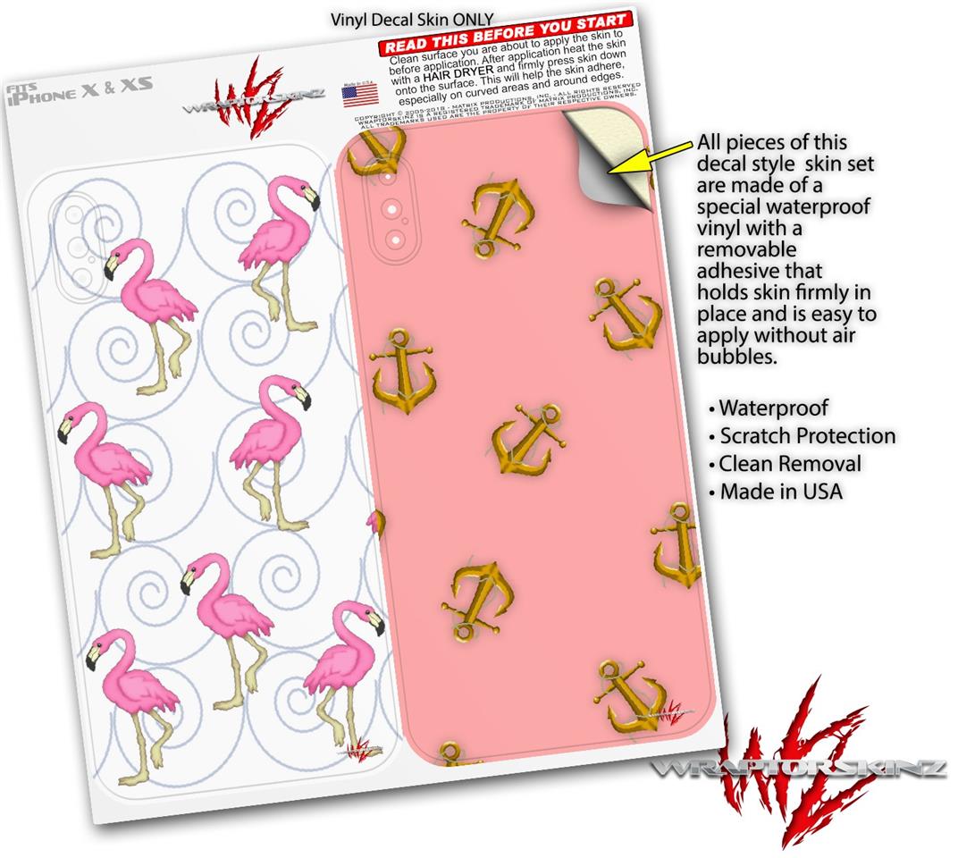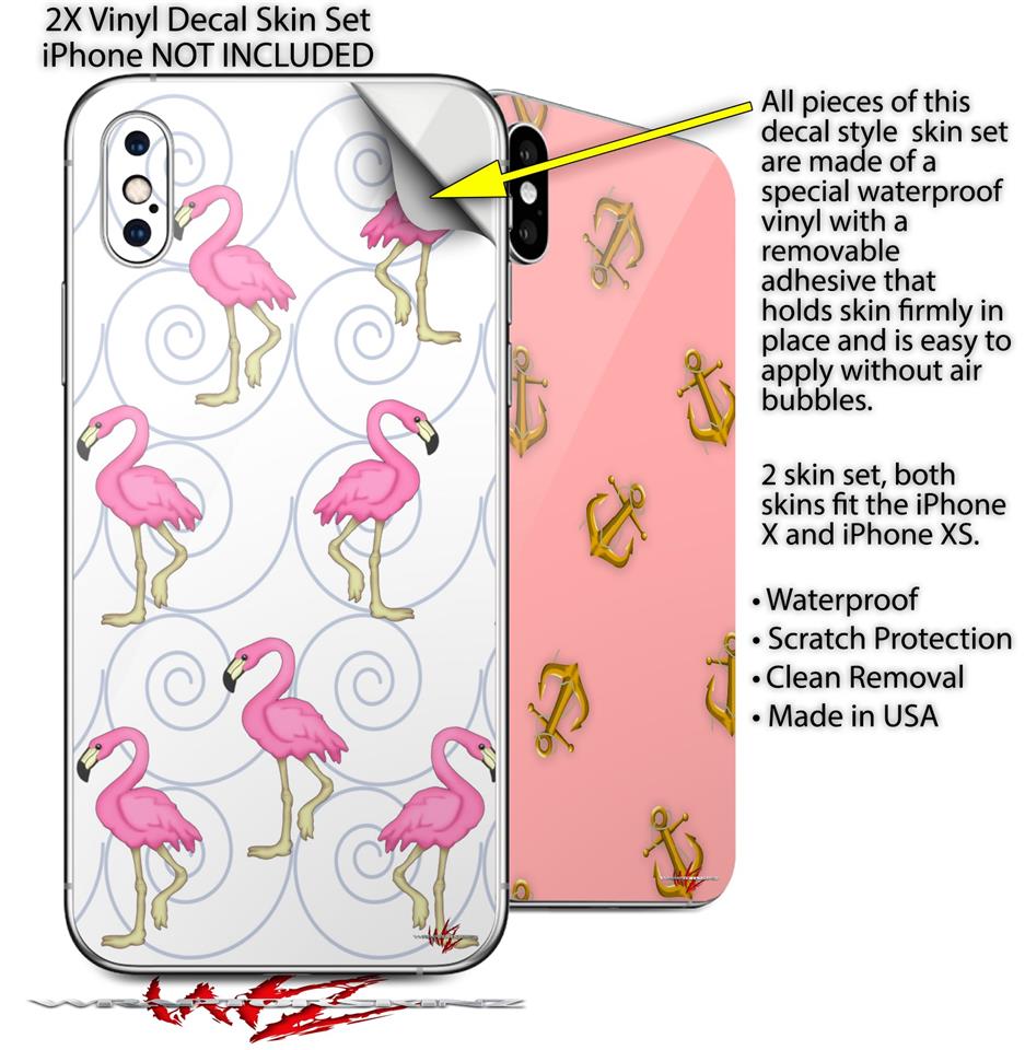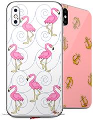 2 Decal style Skin Wraps set compatible with Apple iPhone X and XS Flamingos on White