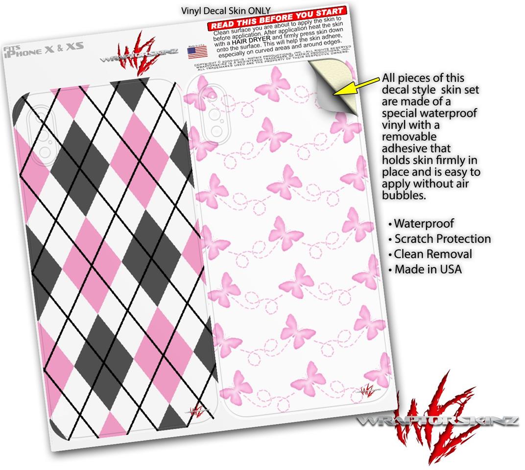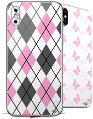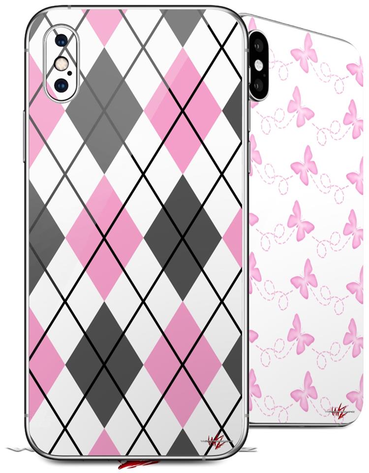 2 Decal style Skin Wraps set compatible with Apple iPhone X and XS Argyle Pink and Gray