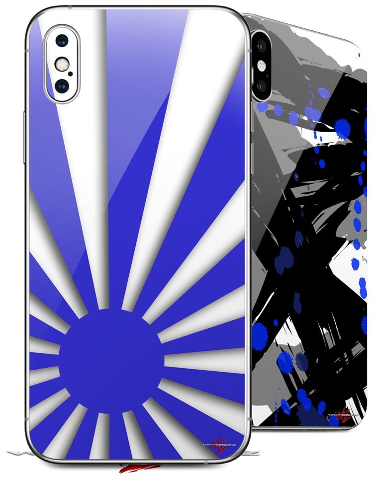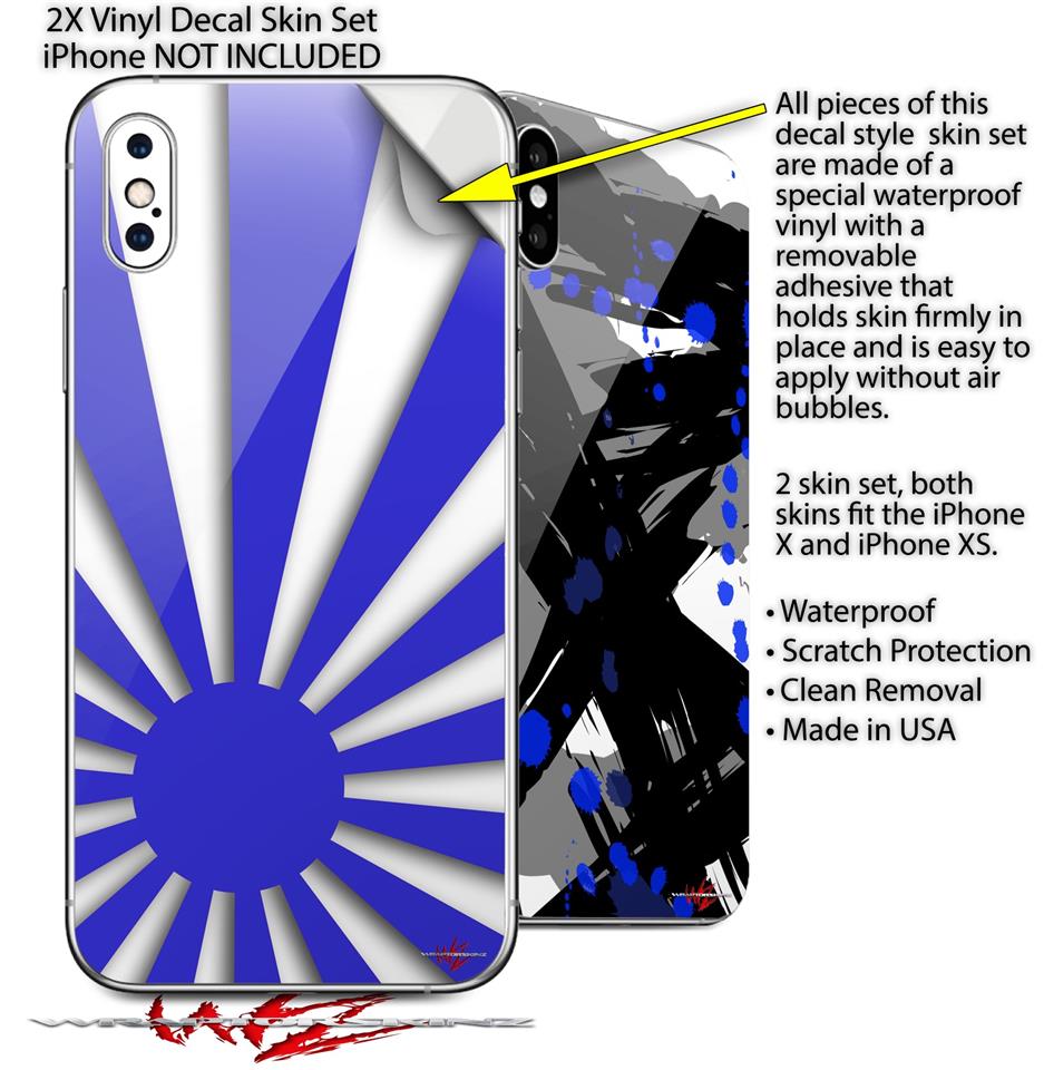 2 Decal style Skin Wraps set compatible with Apple iPhone X and XS Rising Sun Japanese Flag Blue