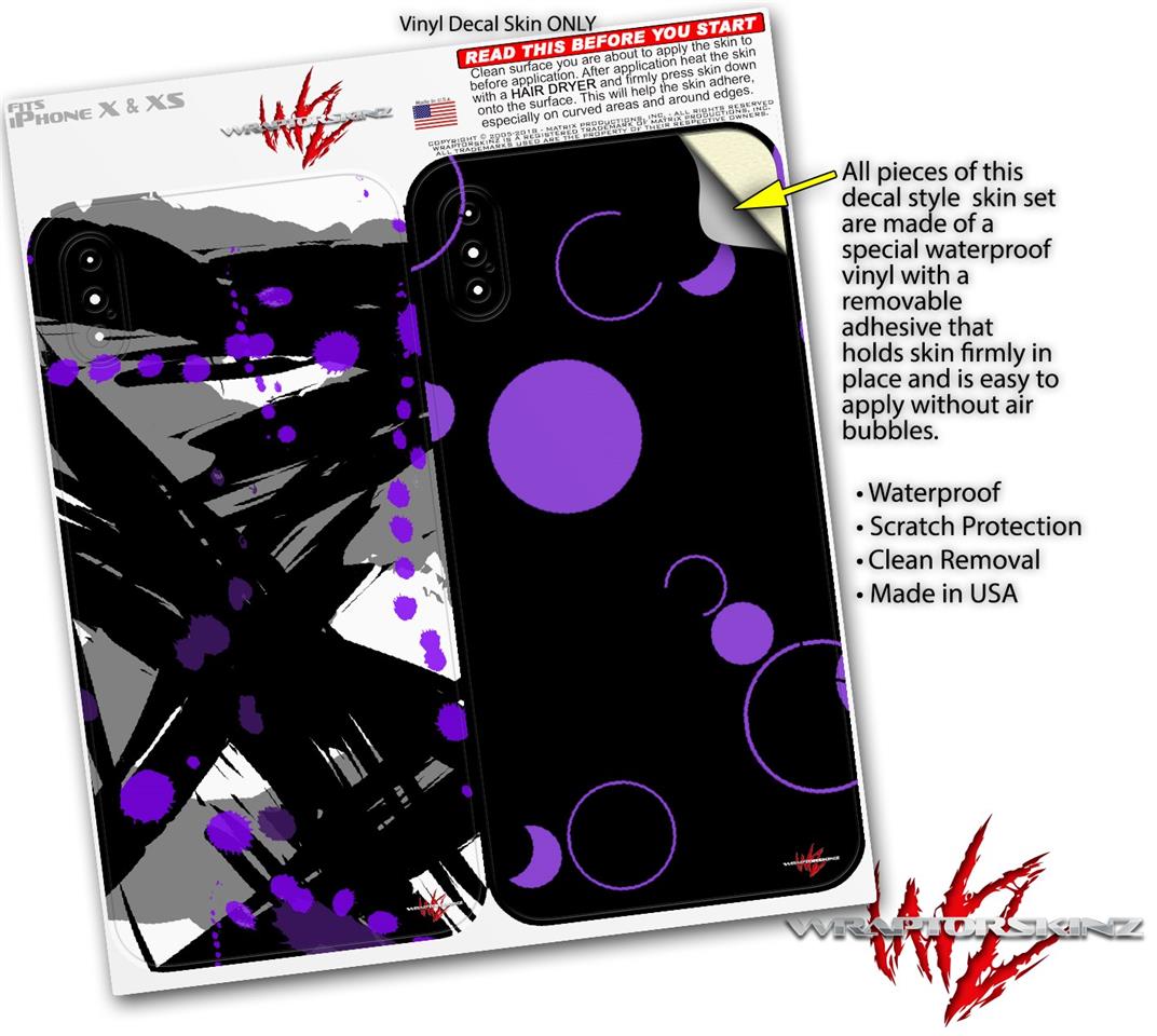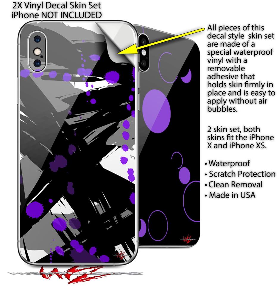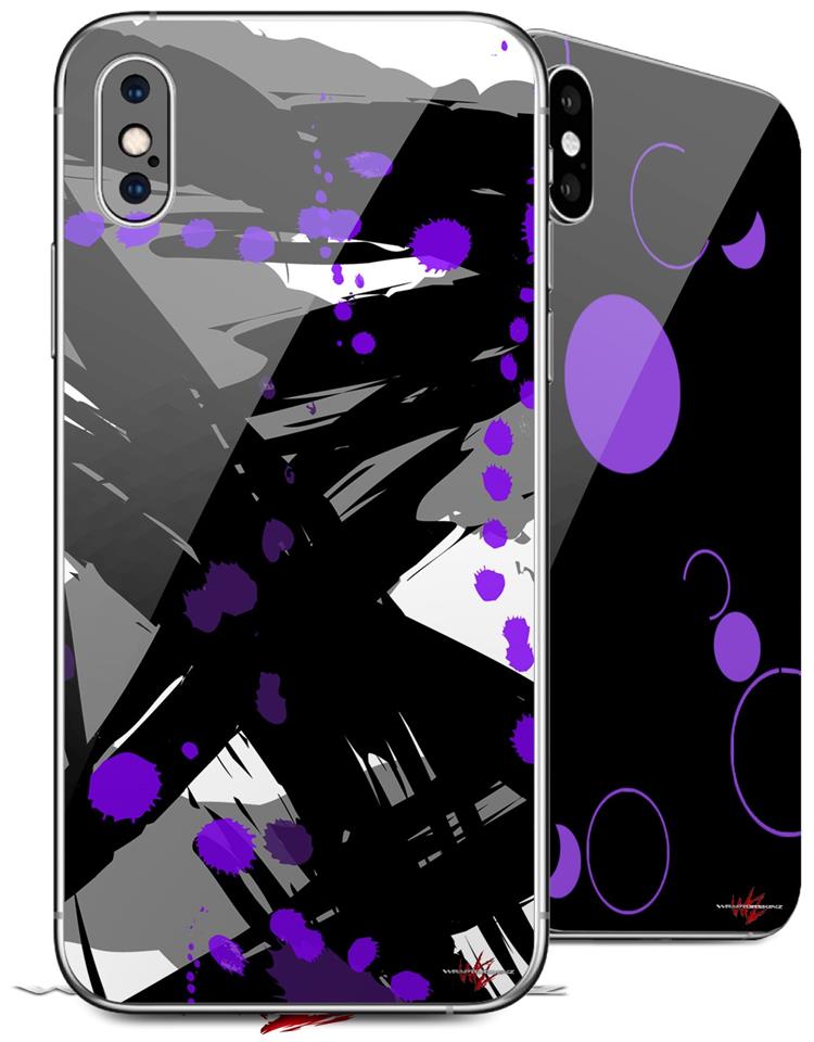 2 Decal style Skin Wraps set compatible with Apple iPhone X and XS Abstract 02 Purple