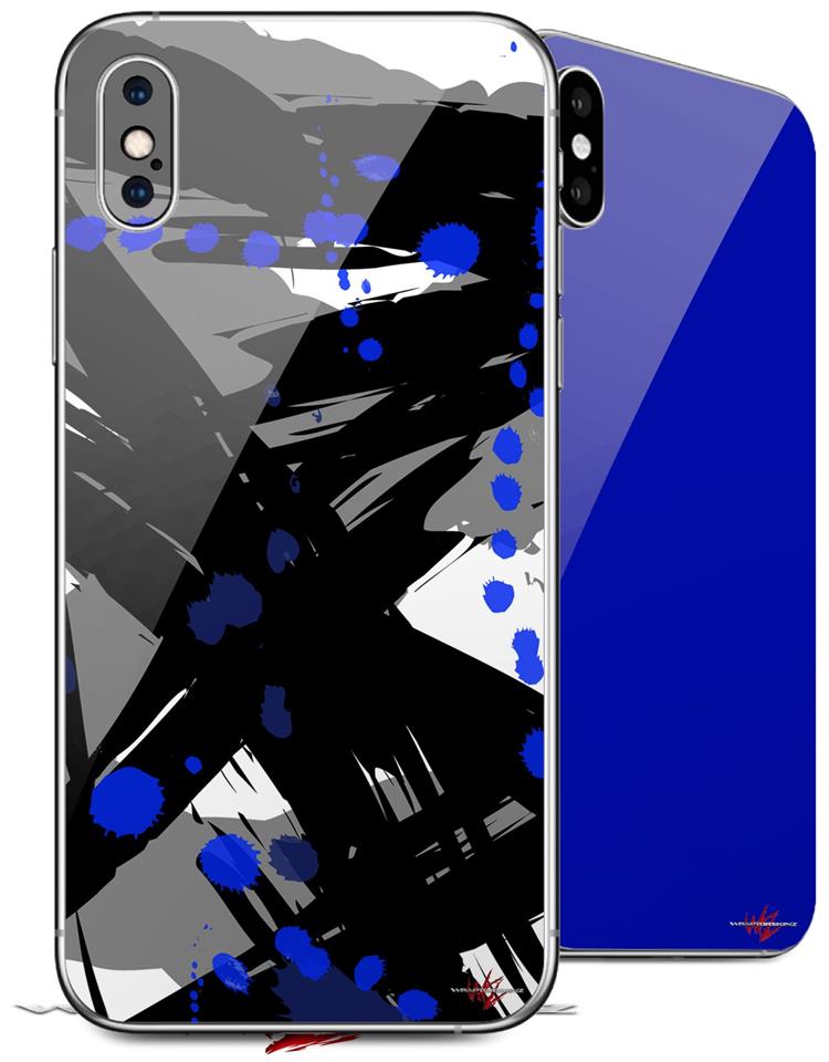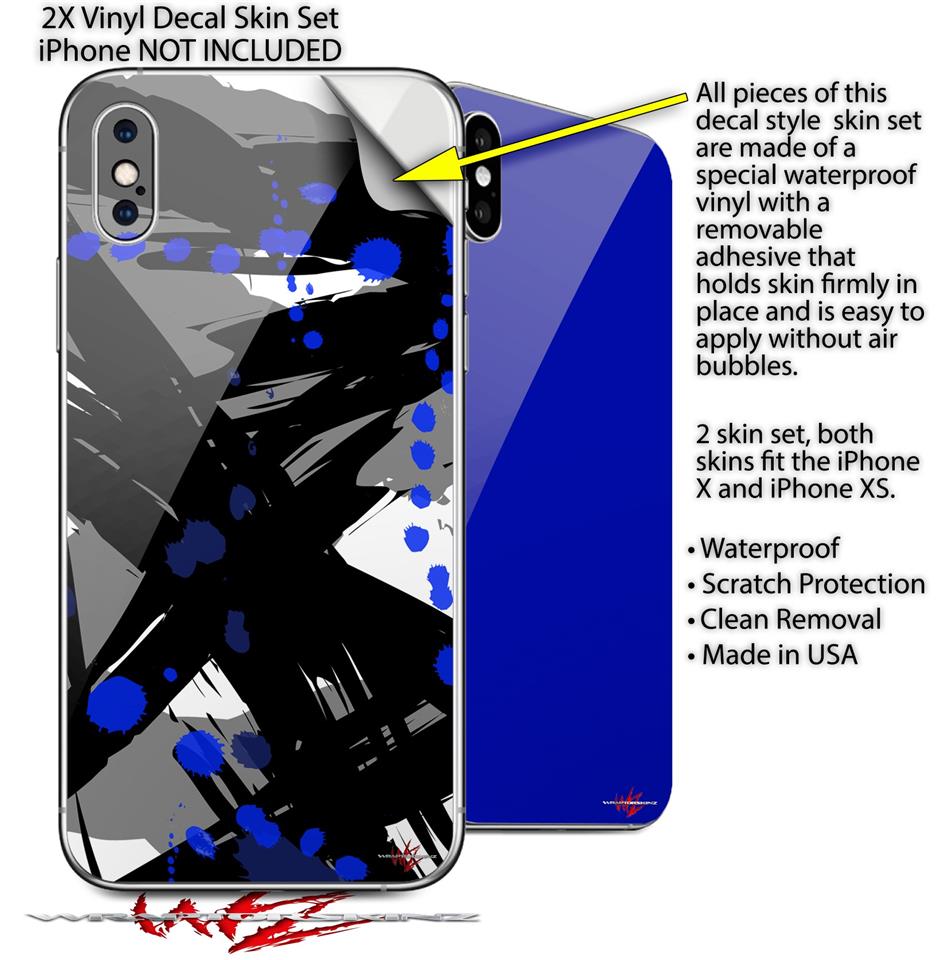 2 Decal style Skin Wraps set compatible with Apple iPhone X and XS Abstract 02 Blue