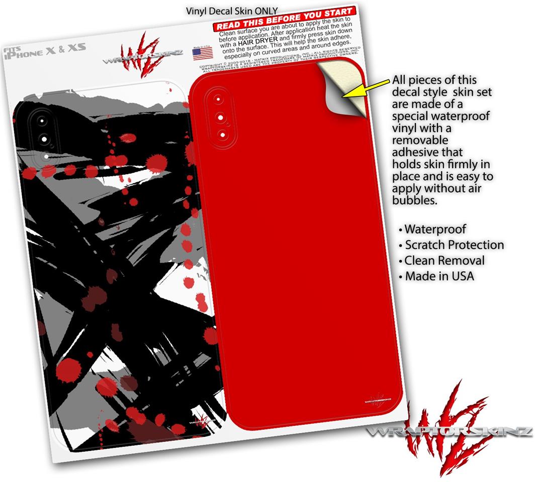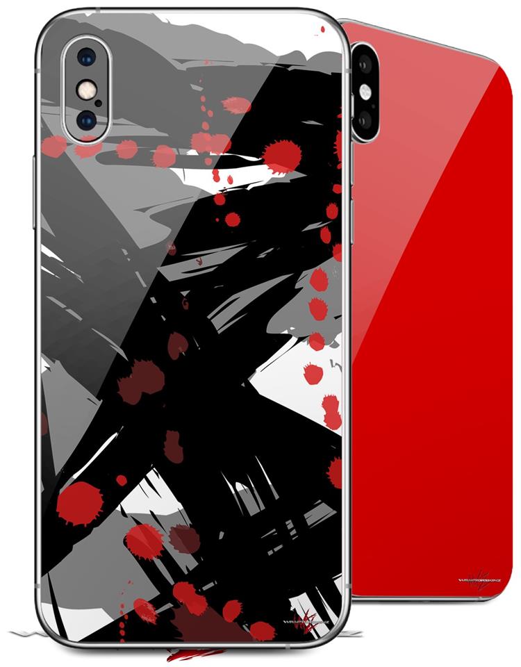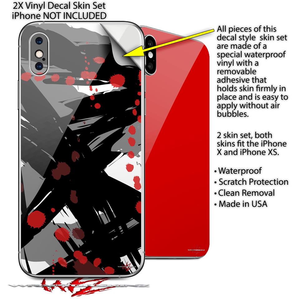 2 Decal style Skin Wraps set compatible with Apple iPhone X and XS Abstract 02 Red