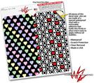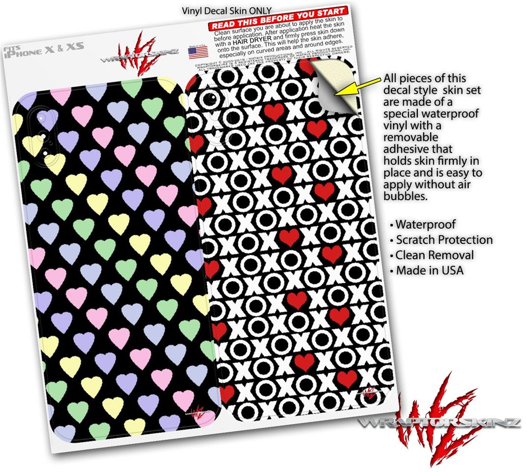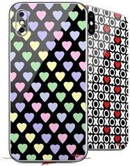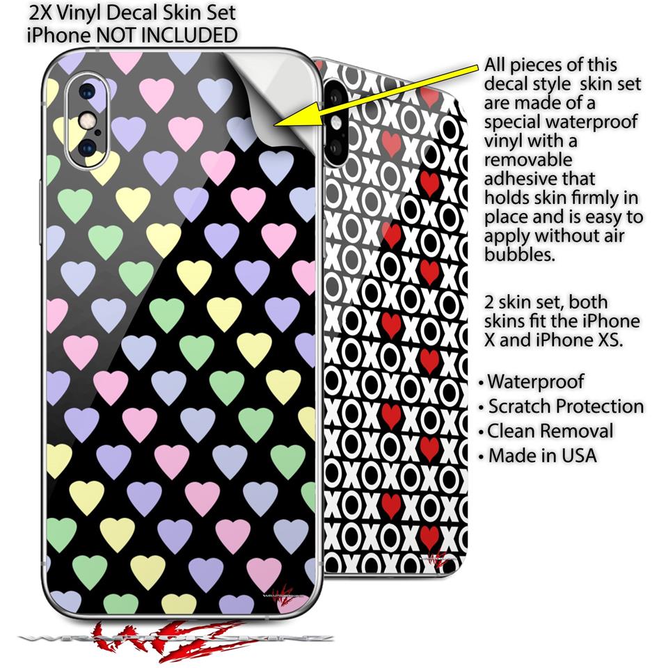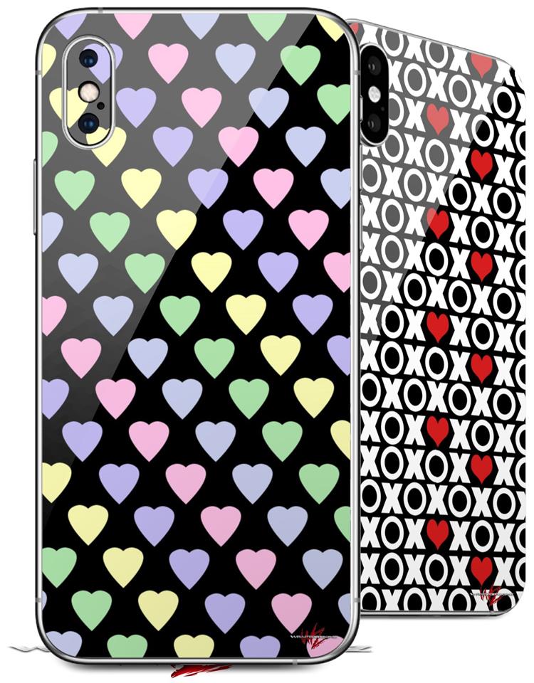 2 Decal style Skin Wraps set compatible with Apple iPhone X and XS Pastel Hearts on Black