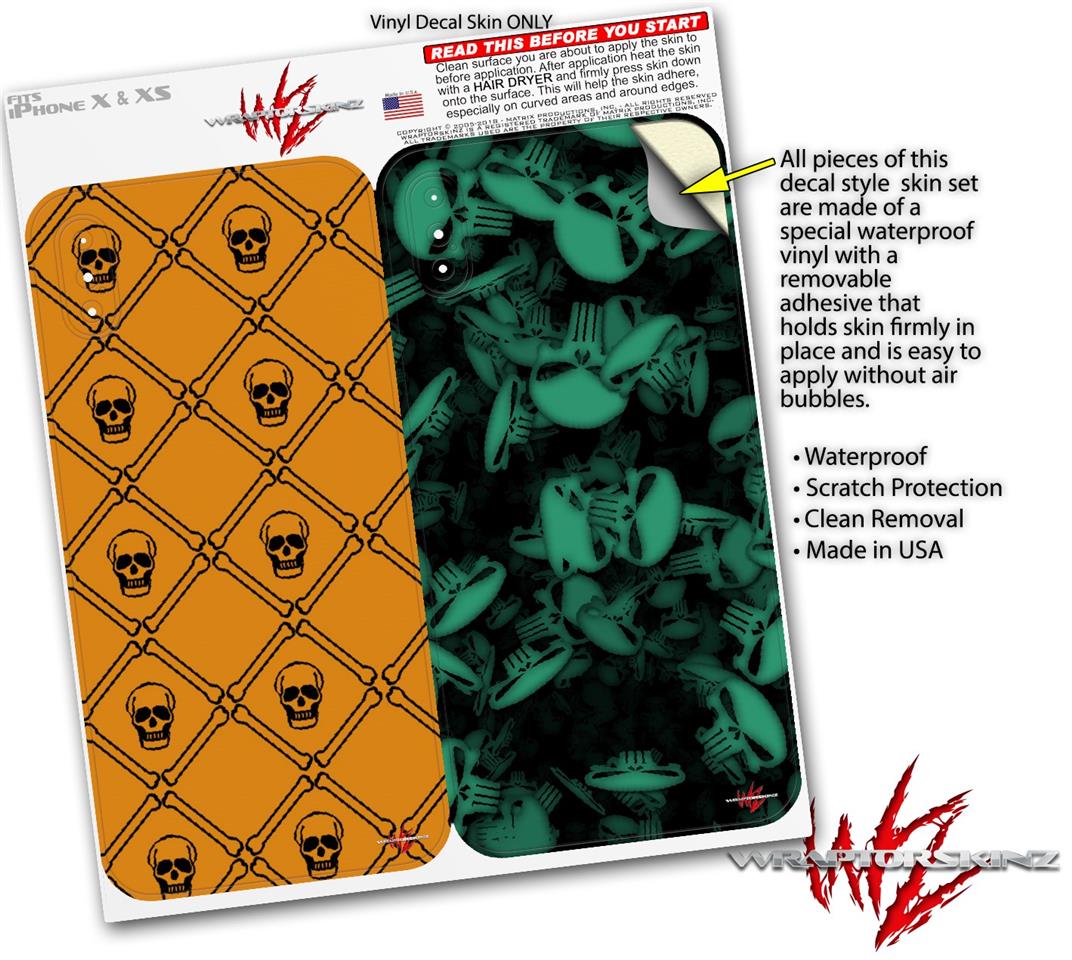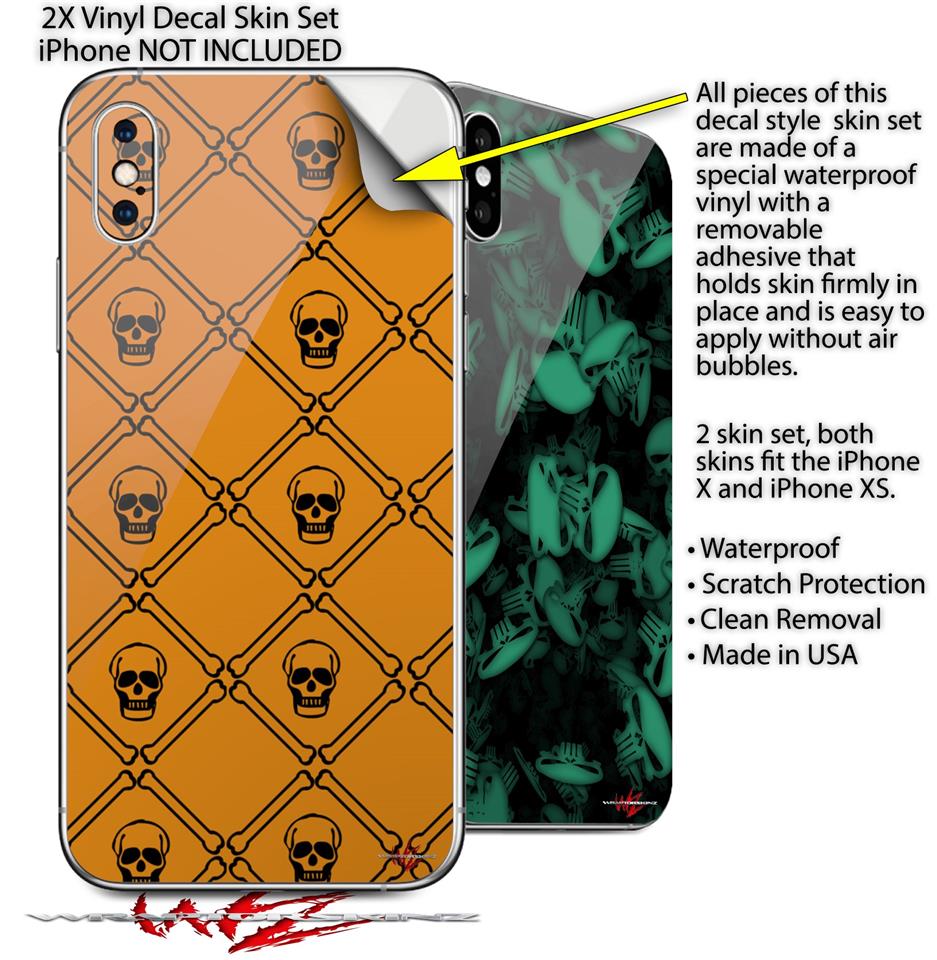 2 Decal style Skin Wraps set compatible with Apple iPhone X and XS Halloween Skull and Bones