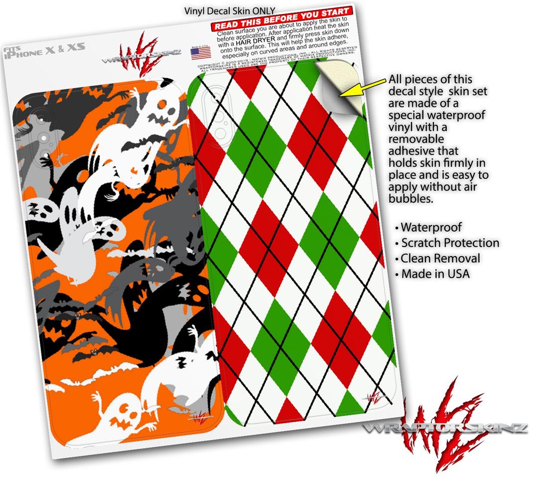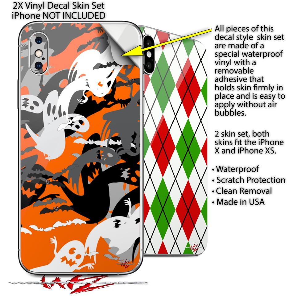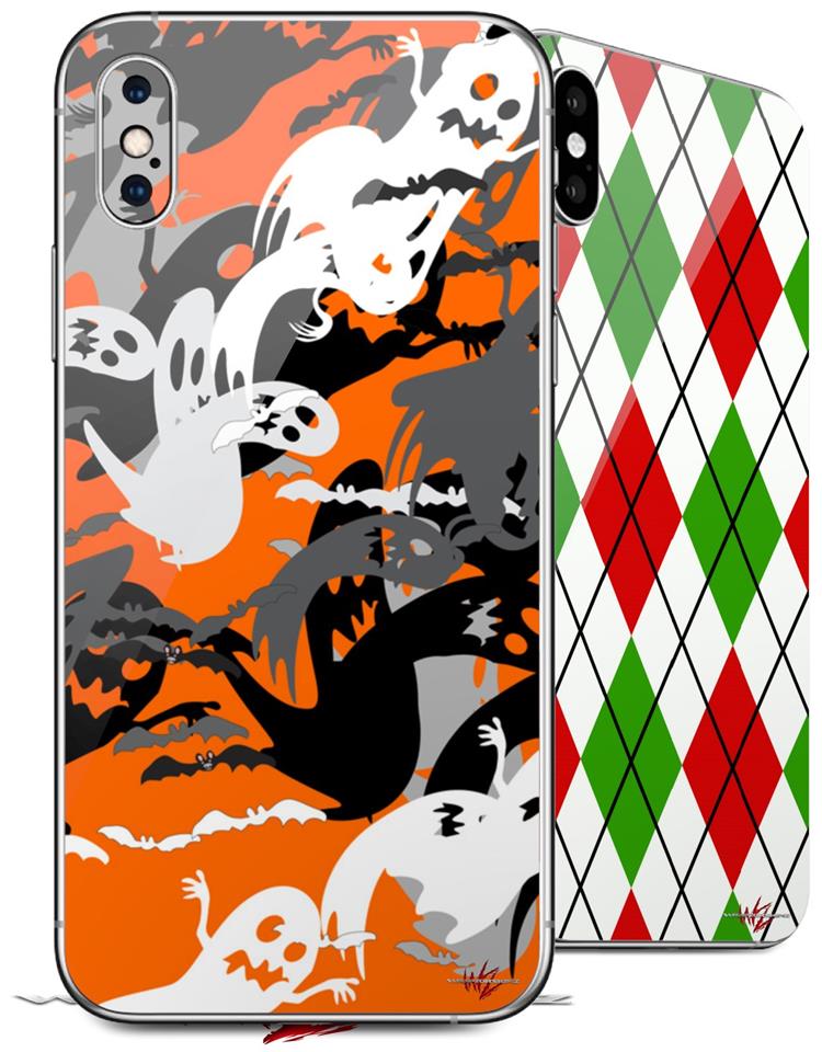 2 Decal style Skin Wraps set compatible with Apple iPhone X and XS Halloween Ghosts