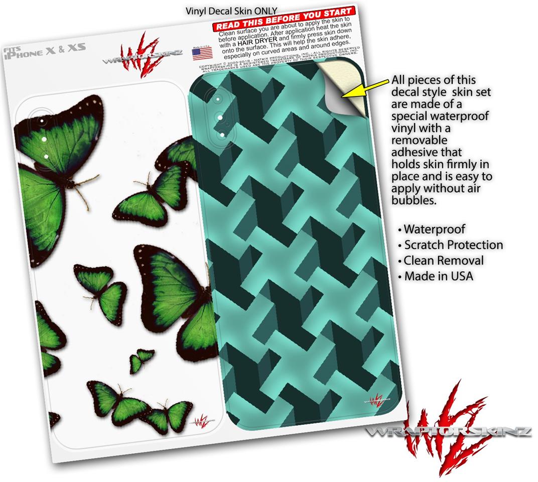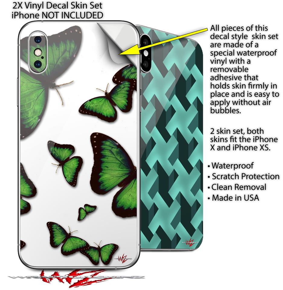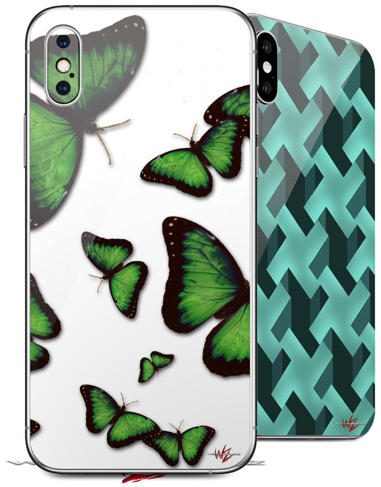2 Decal style Skin Wraps set compatible with Apple iPhone X and XS Butterflies Green