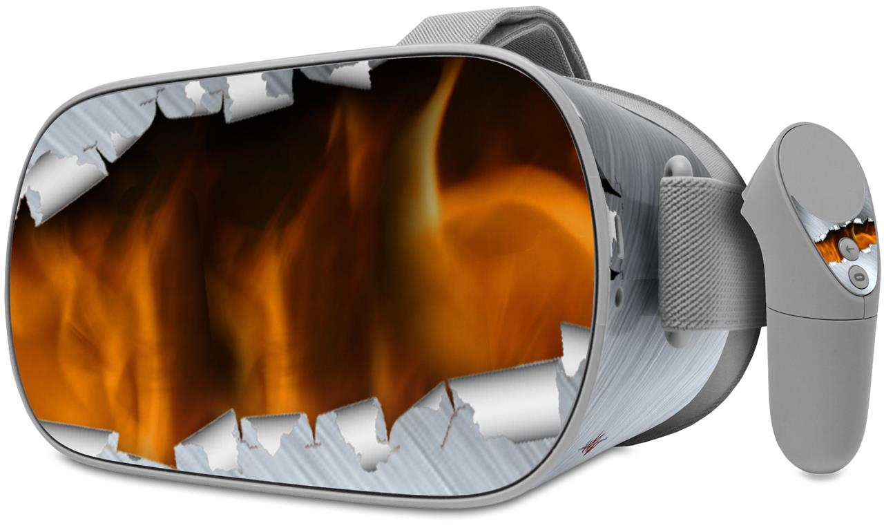 Decal style Skin Wrap compatible with Oculus Go Headset - Ripped Metal Fire (OCULUS NOT INCLUDED)