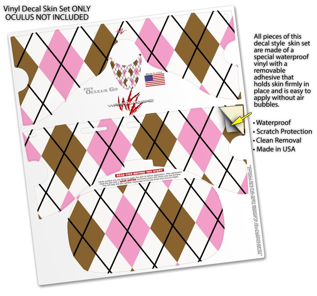 Decal style Skin Wrap compatible with Oculus Go Headset - Argyle Pink and Brown (OCULUS NOT INCLUDED)