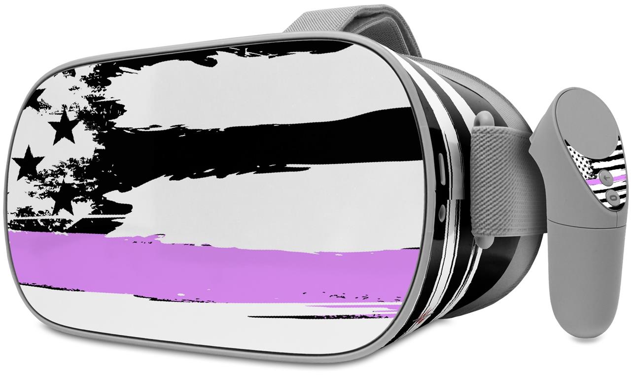 Decal style Skin Wrap compatible with Oculus Go Headset - Brushed USA American Flag Pink Line (OCULUS NOT INCLUDED)