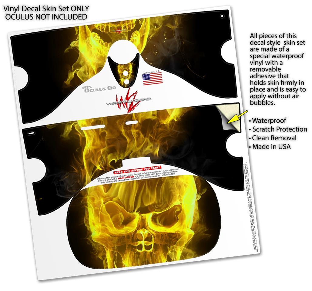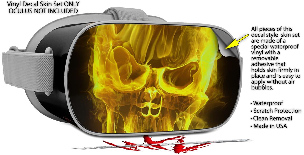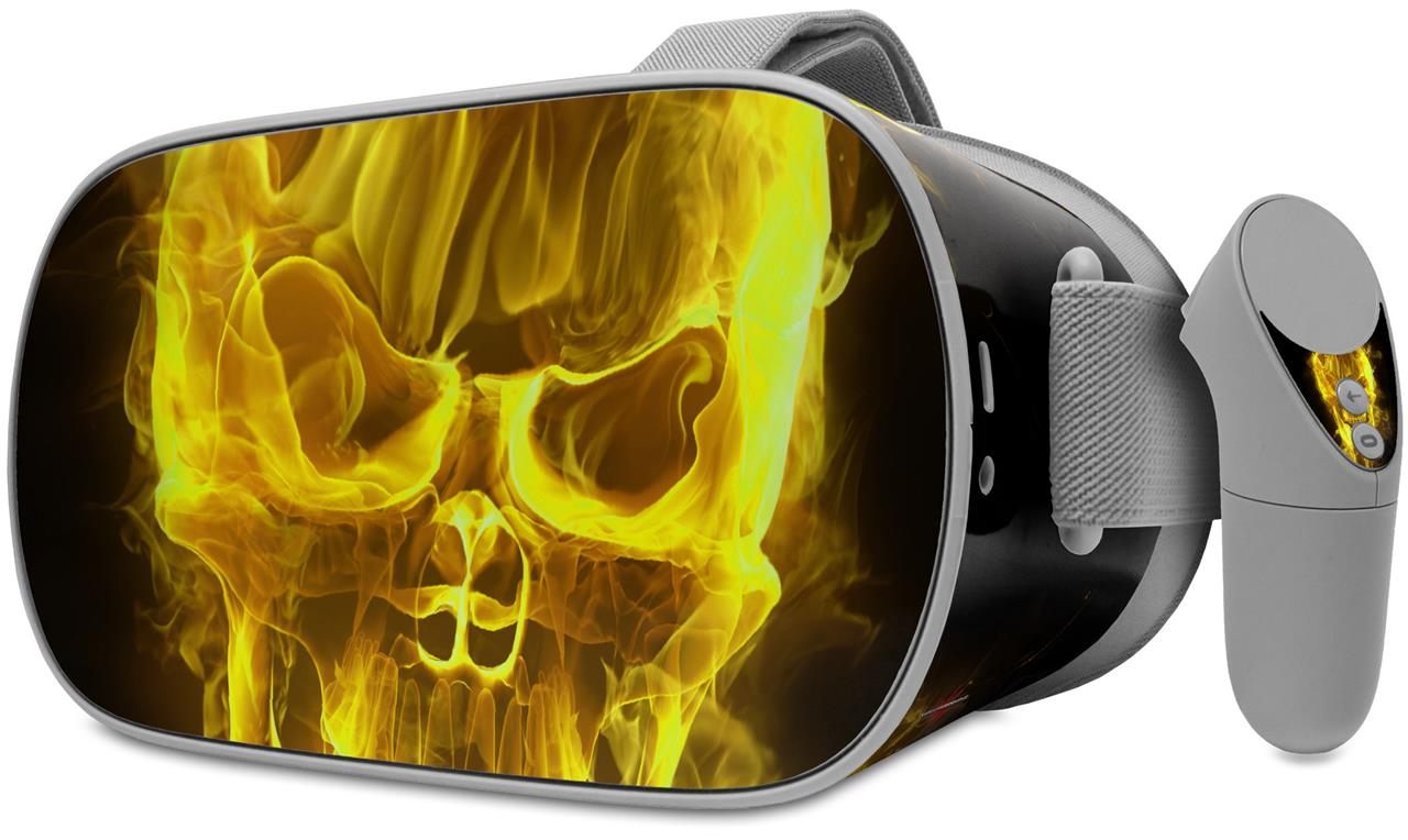 Decal style Skin Wrap compatible with Oculus Go Headset - Flaming Fire Skull Yellow (OCULUS NOT INCLUDED)