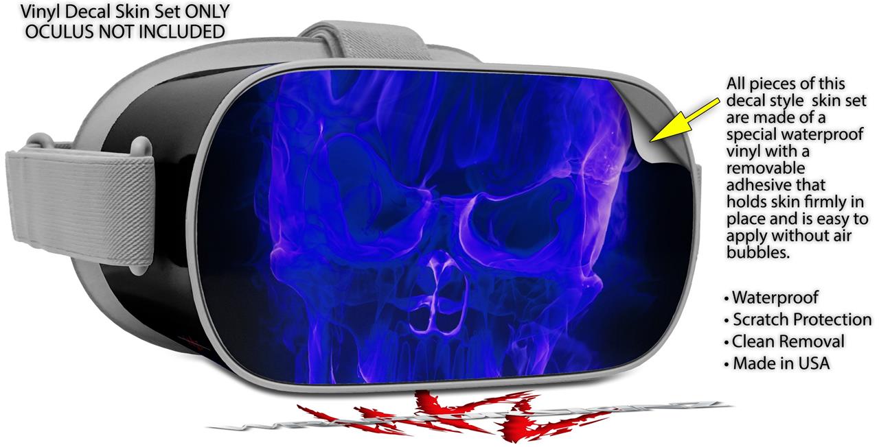 Decal style Skin Wrap compatible with Oculus Go Headset - Flaming Fire Skull Blue (OCULUS NOT INCLUDED)
