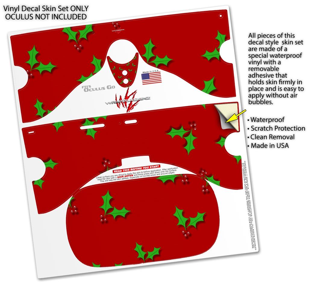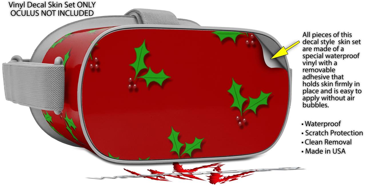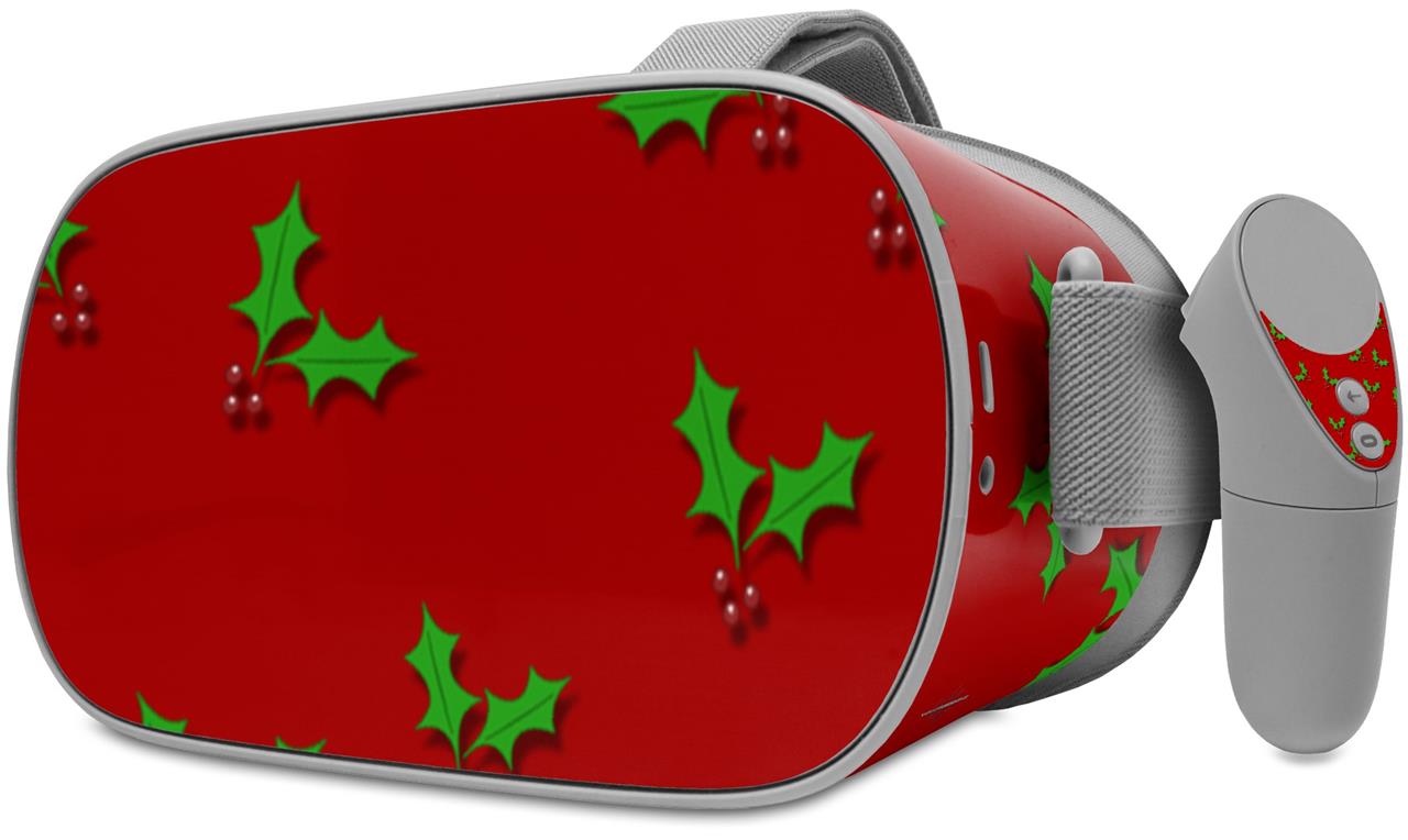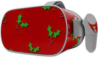 Decal style Skin Wrap compatible with Oculus Go Headset - Christmas Holly Leaves on Red (OCULUS NOT INCLUDED)