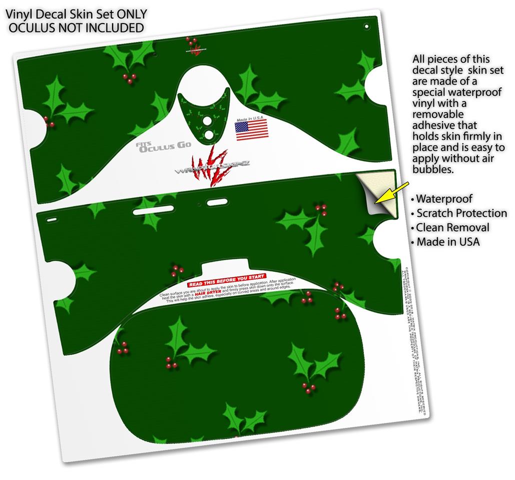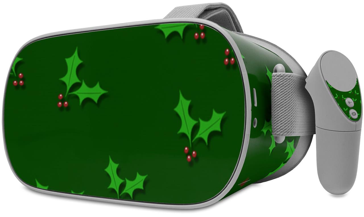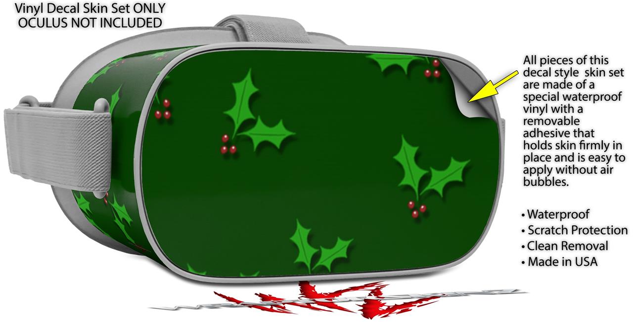 Decal style Skin Wrap compatible with Oculus Go Headset - Christmas Holly Leaves on Green (OCULUS NOT INCLUDED)