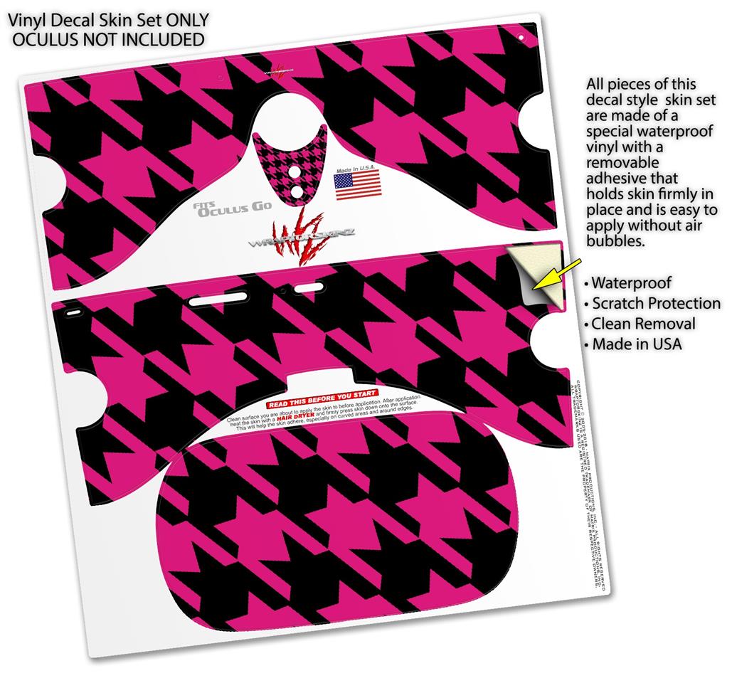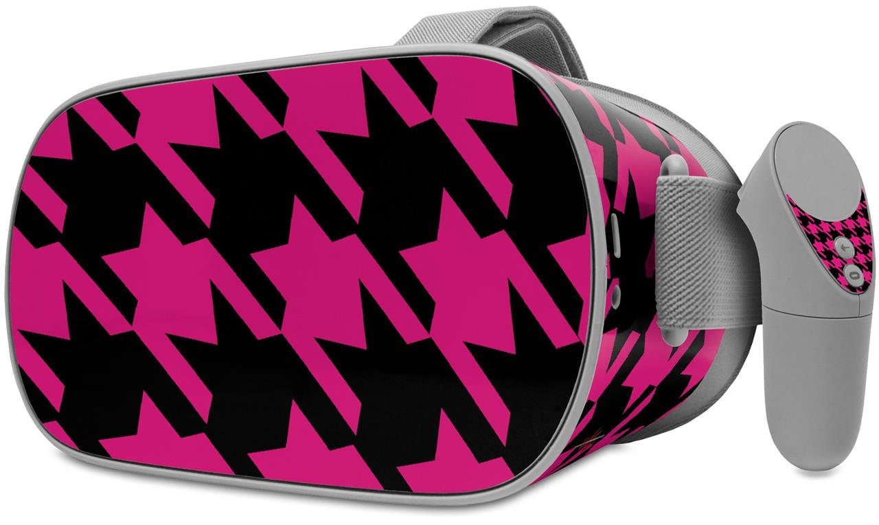 Decal style Skin Wrap compatible with Oculus Go Headset - Houndstooth Hot Pink on Black (OCULUS NOT INCLUDED)
