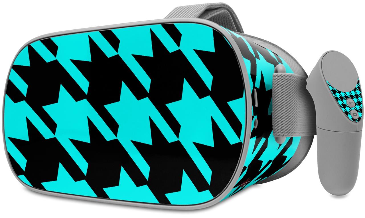 Decal style Skin Wrap compatible with Oculus Go Headset - Houndstooth Neon Teal on Black (OCULUS NOT INCLUDED)