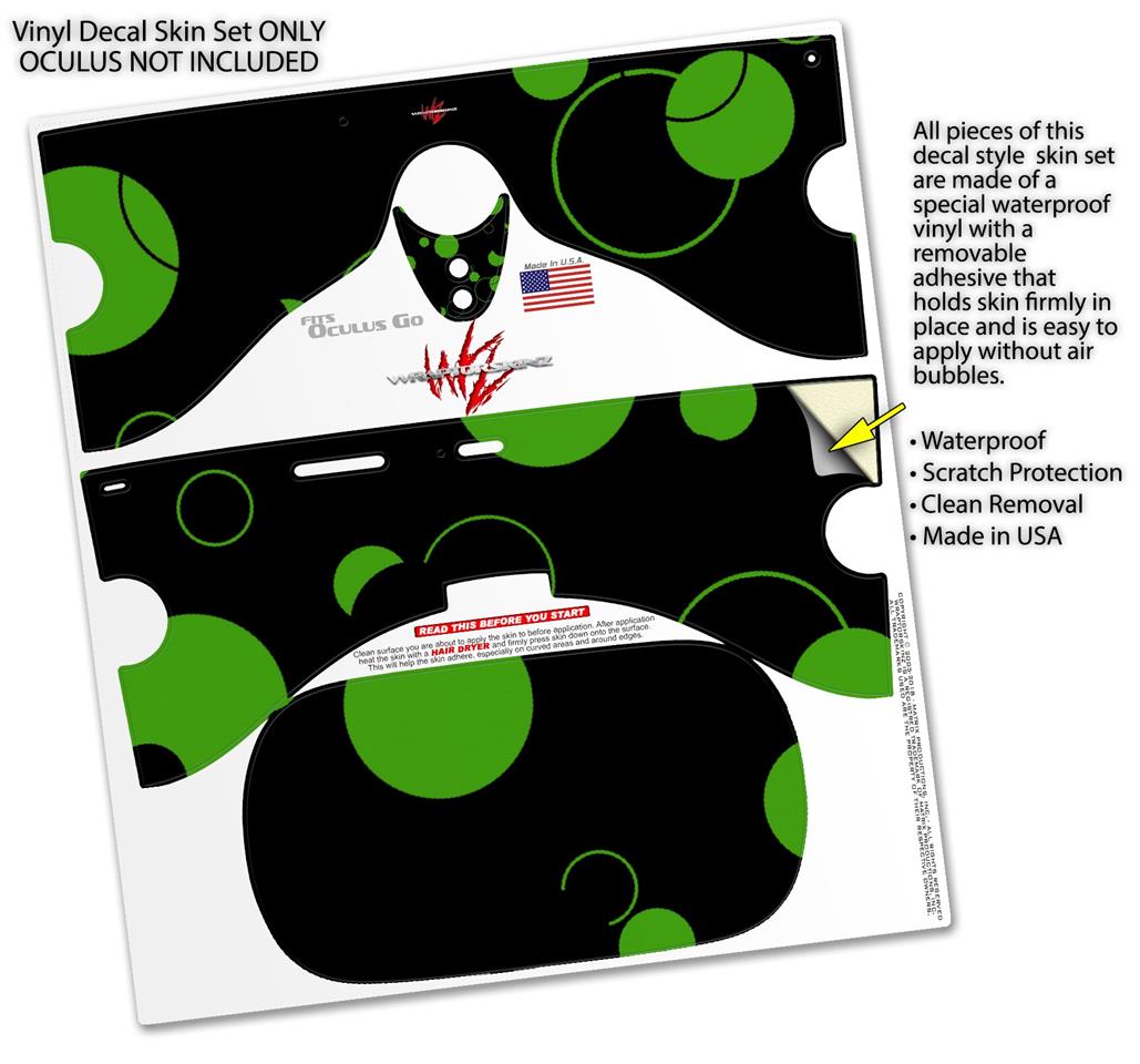 Decal style Skin Wrap compatible with Oculus Go Headset - Lots of Dots Green on Black (OCULUS NOT INCLUDED)