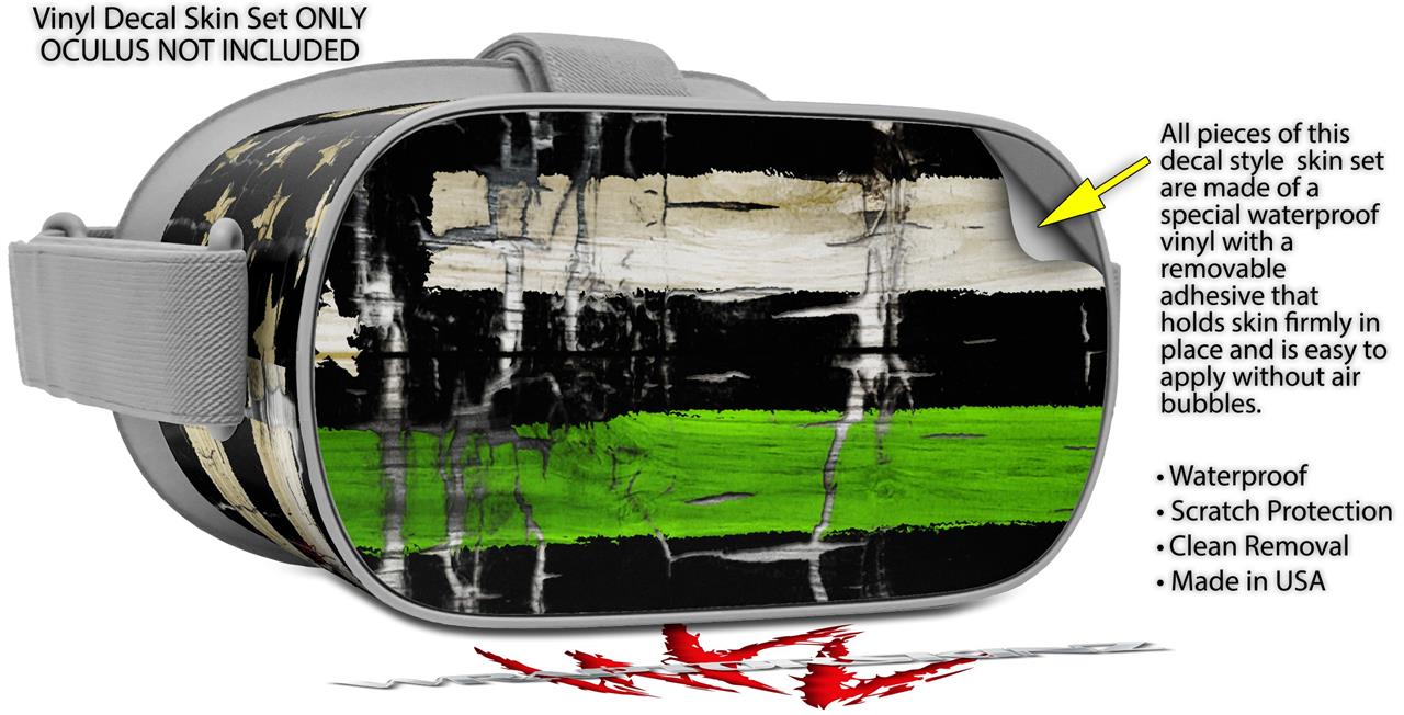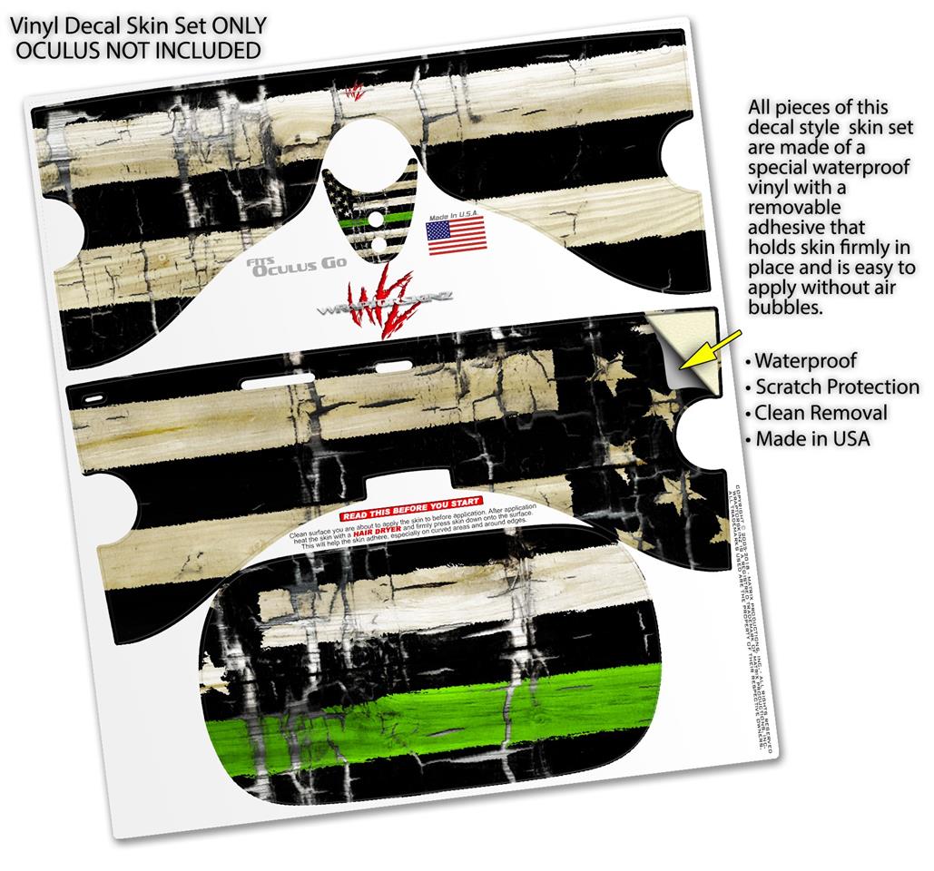 Decal style Skin Wrap compatible with Oculus Go Headset - Painted Faded and Cracked Green Line USA American Flag (OCULUS NOT INCLUDED)