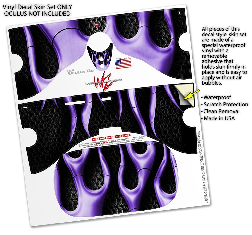 Decal style Skin Wrap compatible with Oculus Go Headset - Metal Flames Purple (OCULUS NOT INCLUDED)