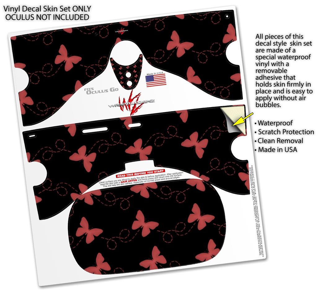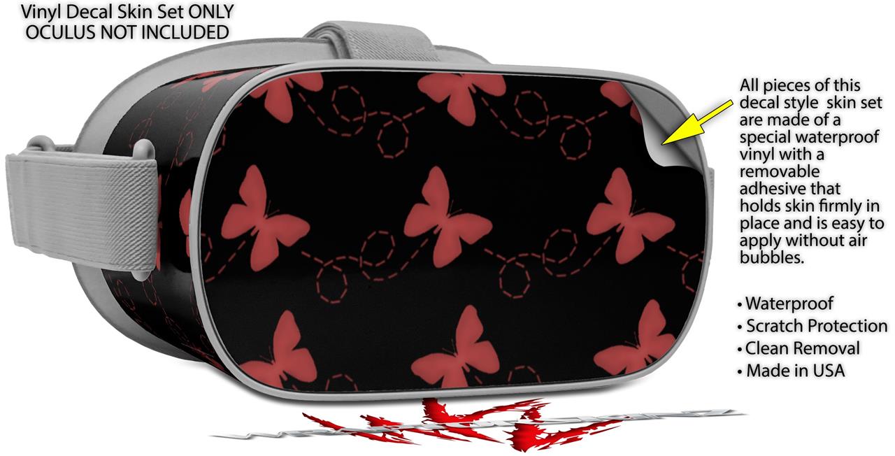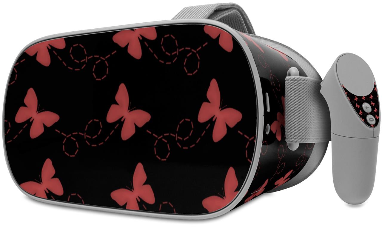 Decal style Skin Wrap compatible with Oculus Go Headset - Pastel Butterflies Red on Black (OCULUS NOT INCLUDED)