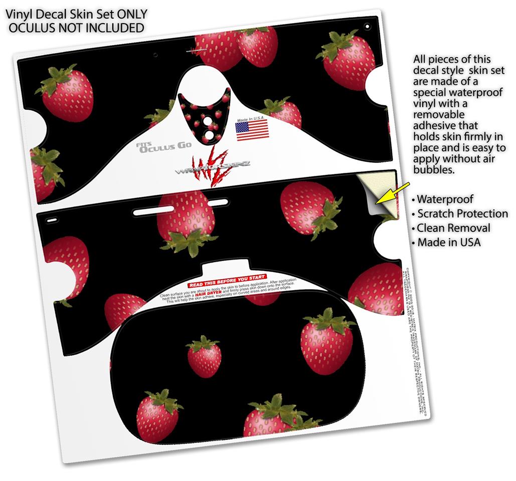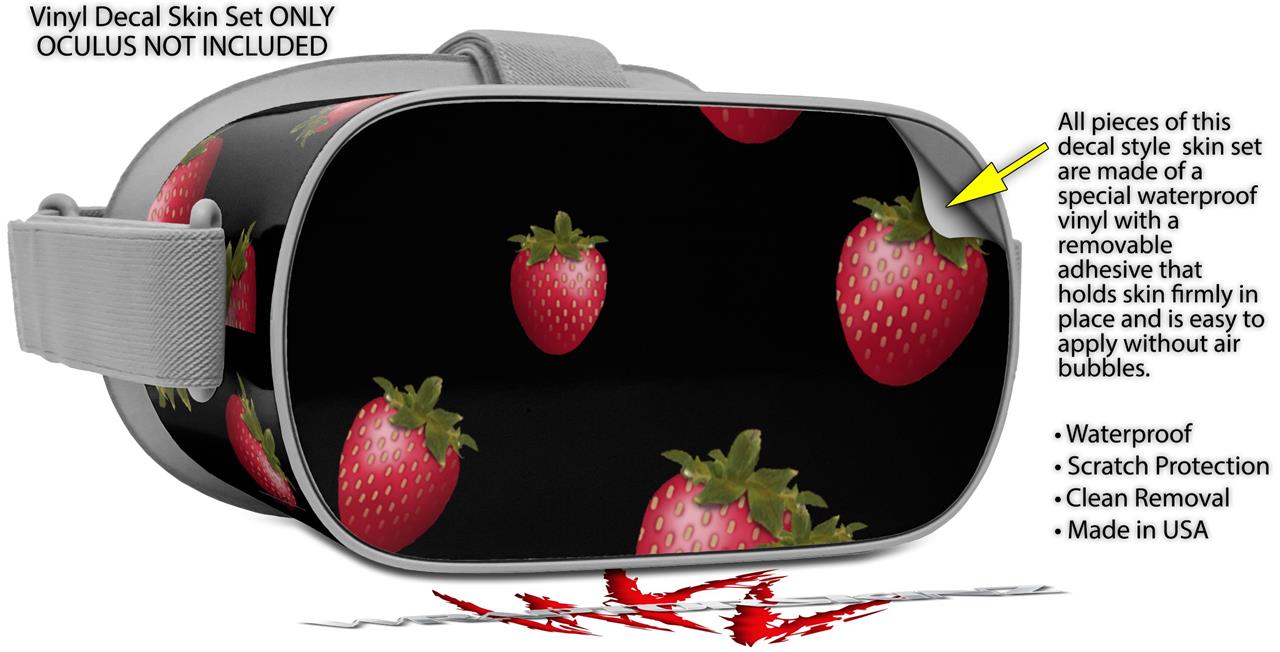 Decal style Skin Wrap compatible with Oculus Go Headset - Strawberries on Black (OCULUS NOT INCLUDED)