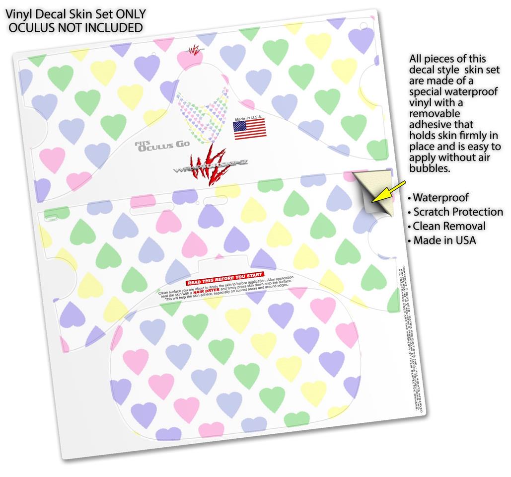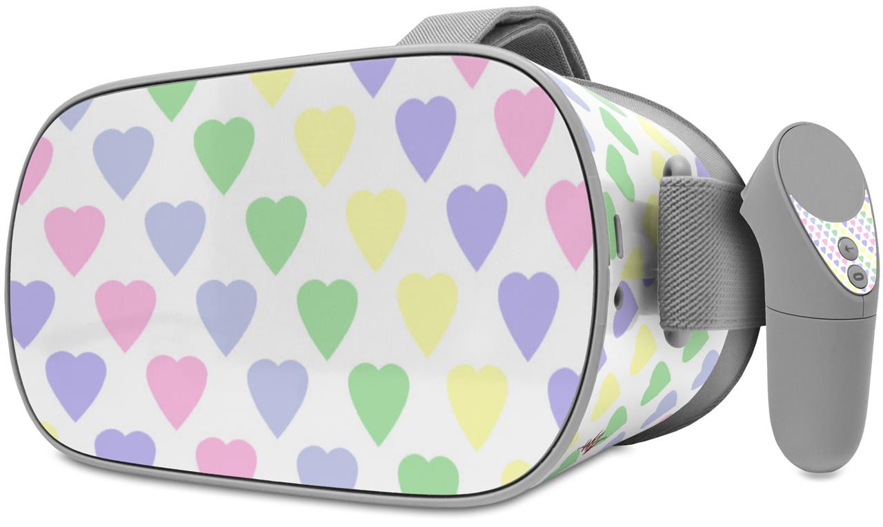 Decal style Skin Wrap compatible with Oculus Go Headset - Pastel Hearts on White (OCULUS NOT INCLUDED)