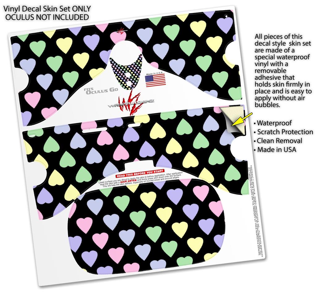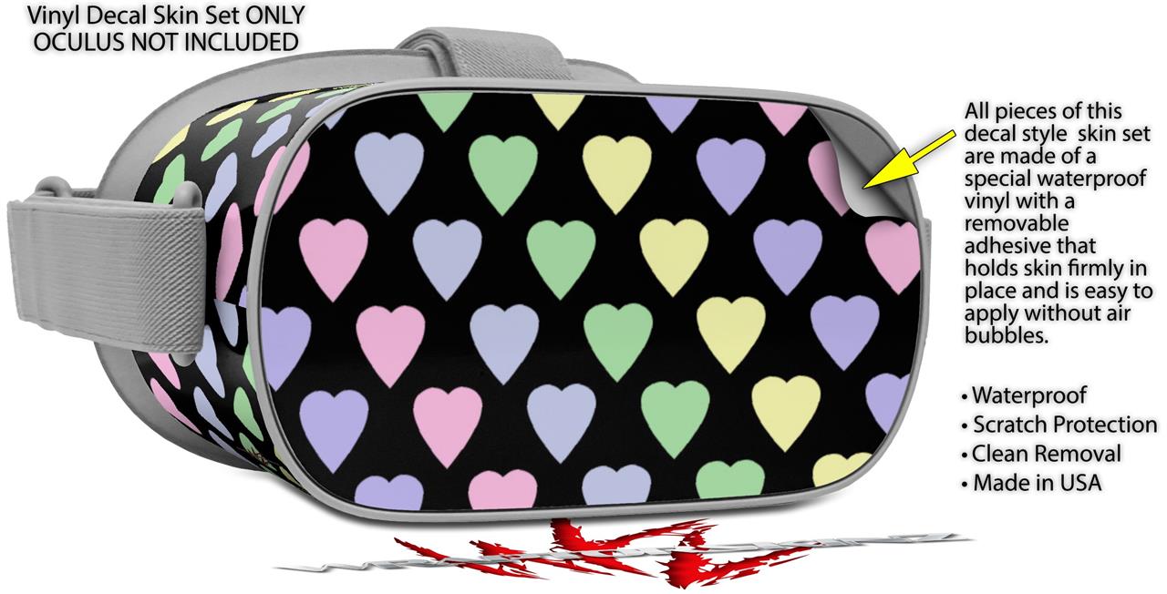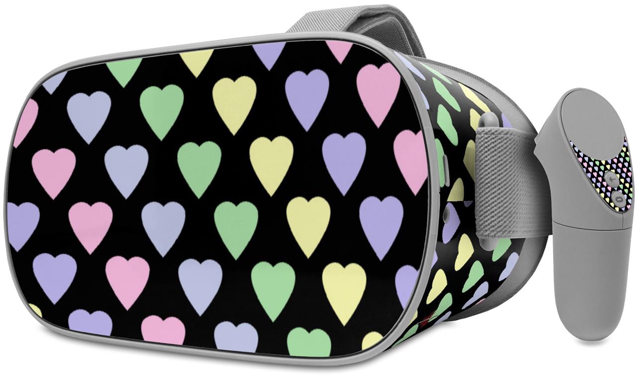 Decal style Skin Wrap compatible with Oculus Go Headset - Pastel Hearts on Black (OCULUS NOT INCLUDED)