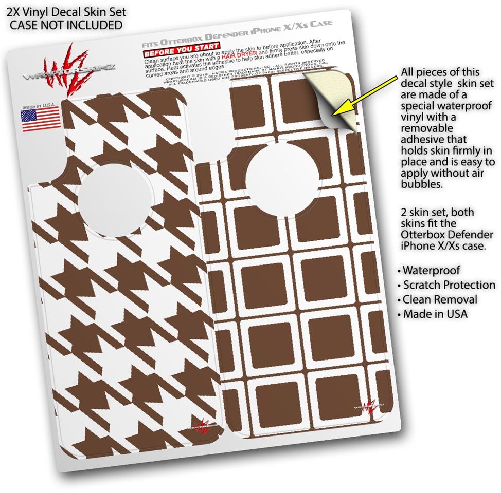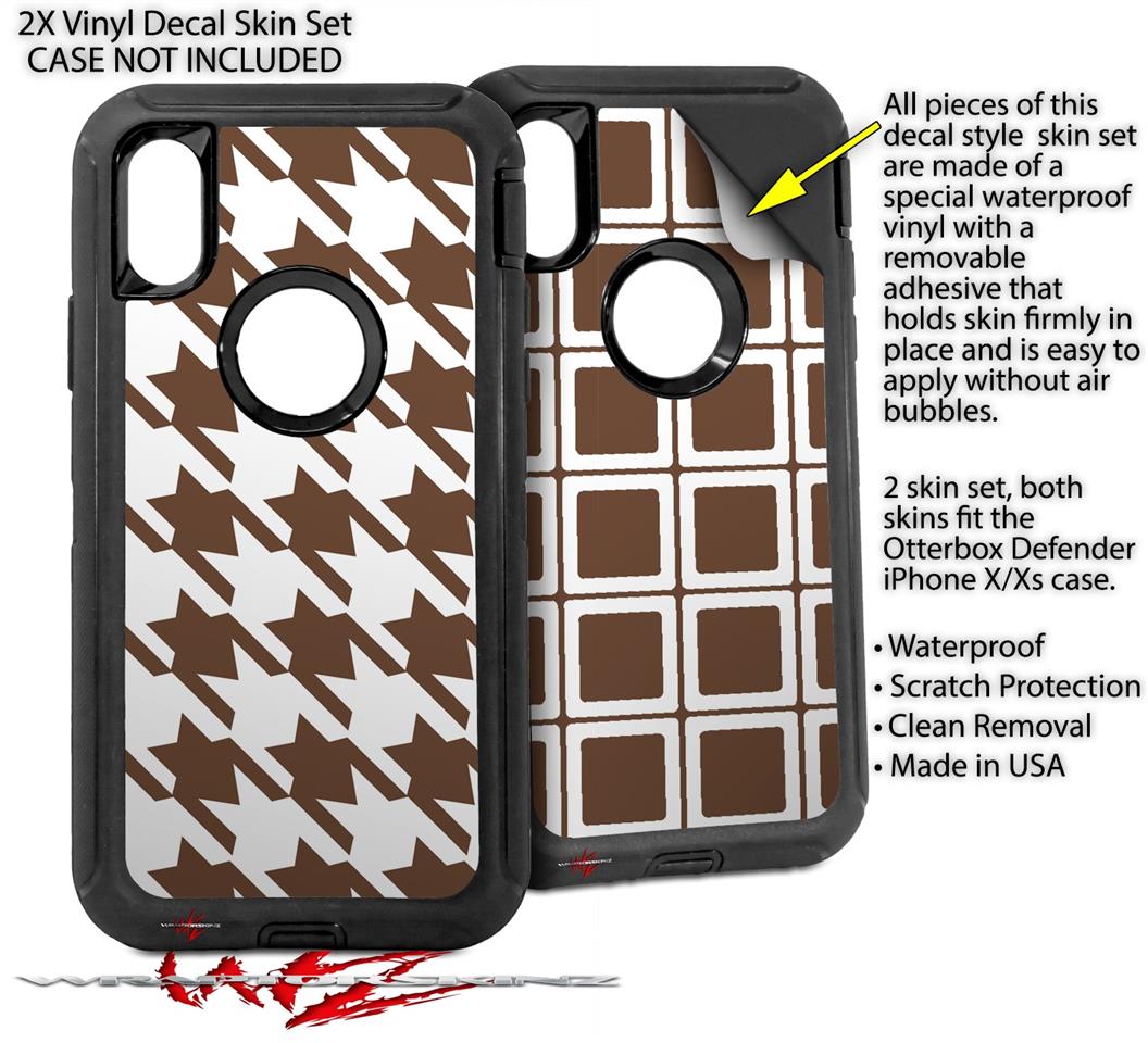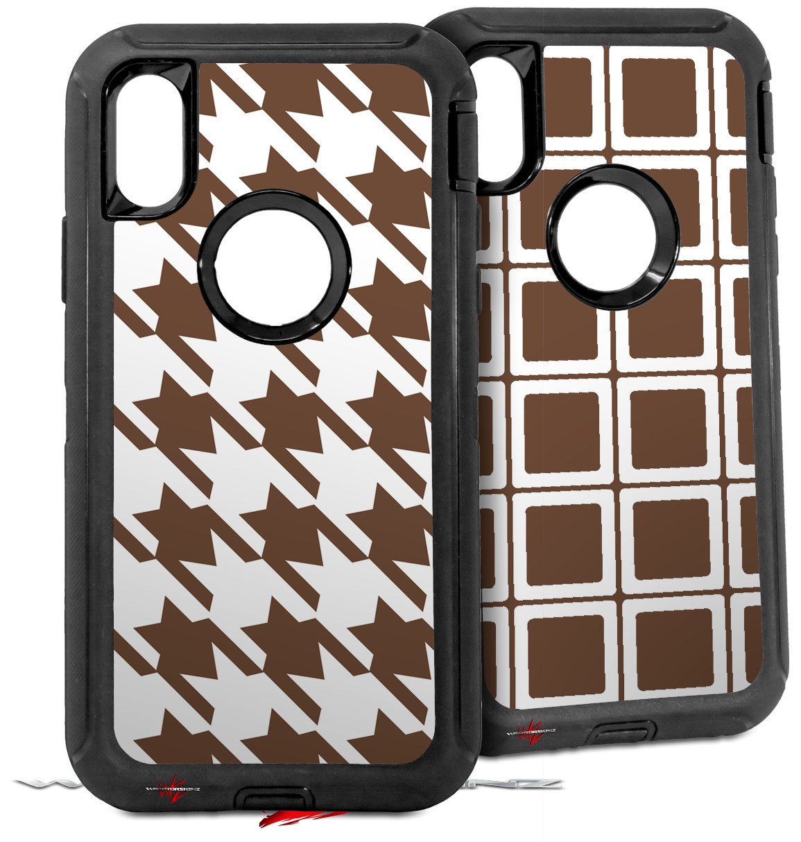 2x Decal style Skin Wrap Set compatible with Otterbox Defender iPhone X and Xs Case - Houndstooth Chocolate Brown (CASE NOT INCLUDED)
