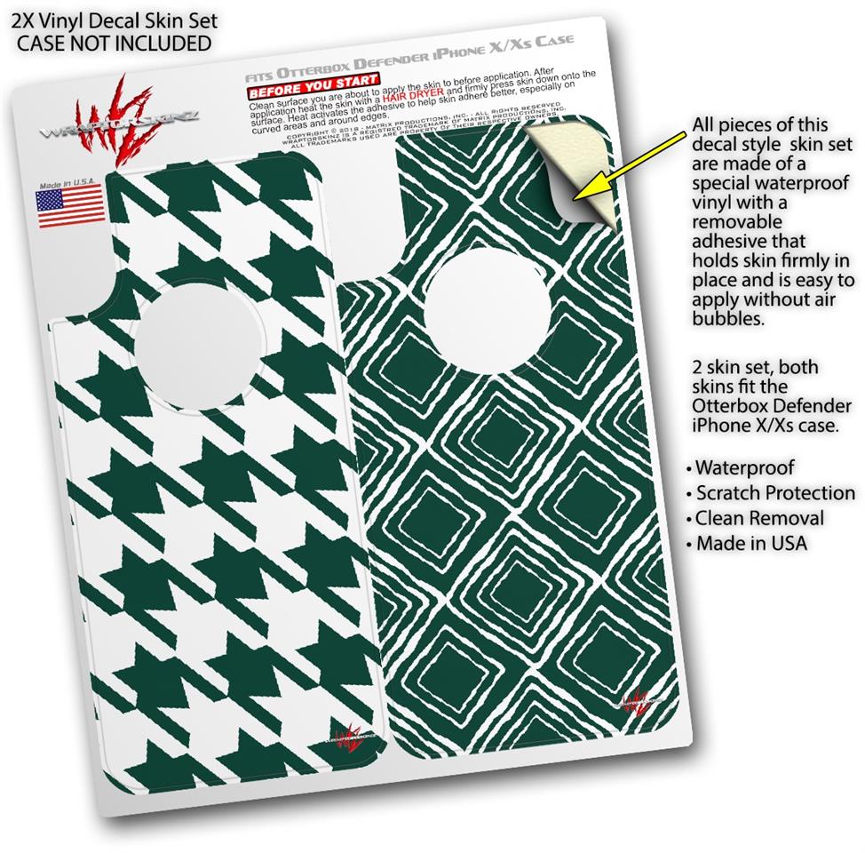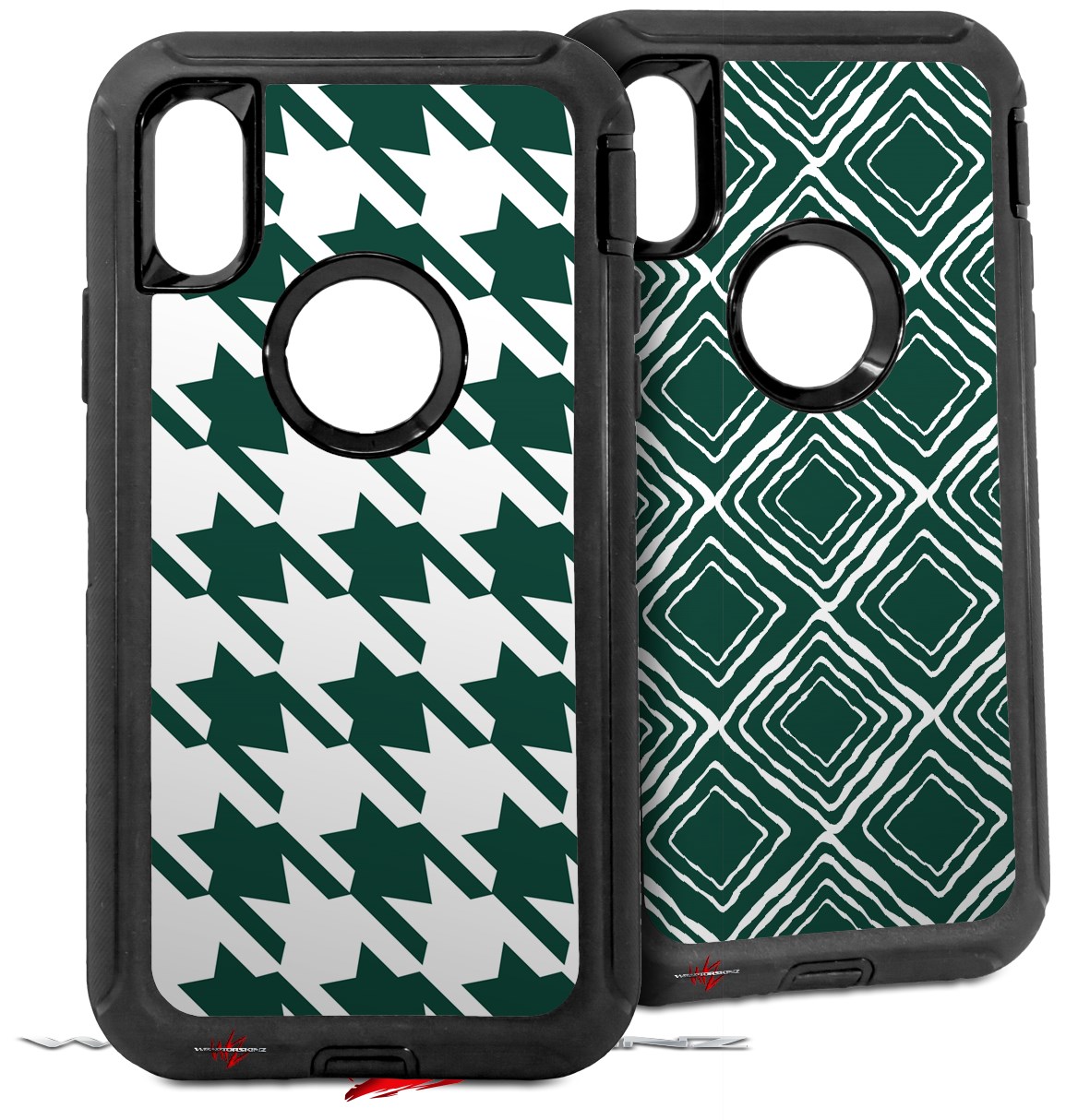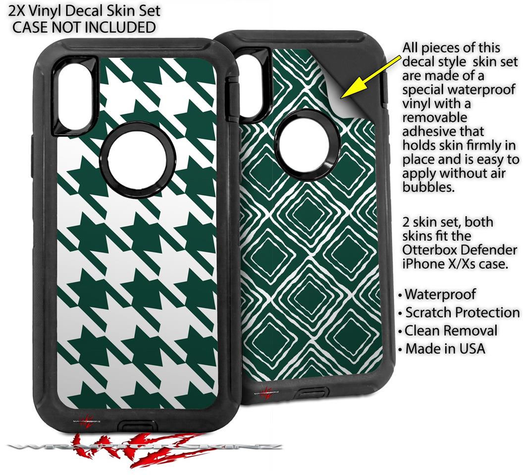2x Decal style Skin Wrap Set compatible with Otterbox Defender iPhone X and Xs Case - Houndstooth Hunter Green (CASE NOT INCLUDED)