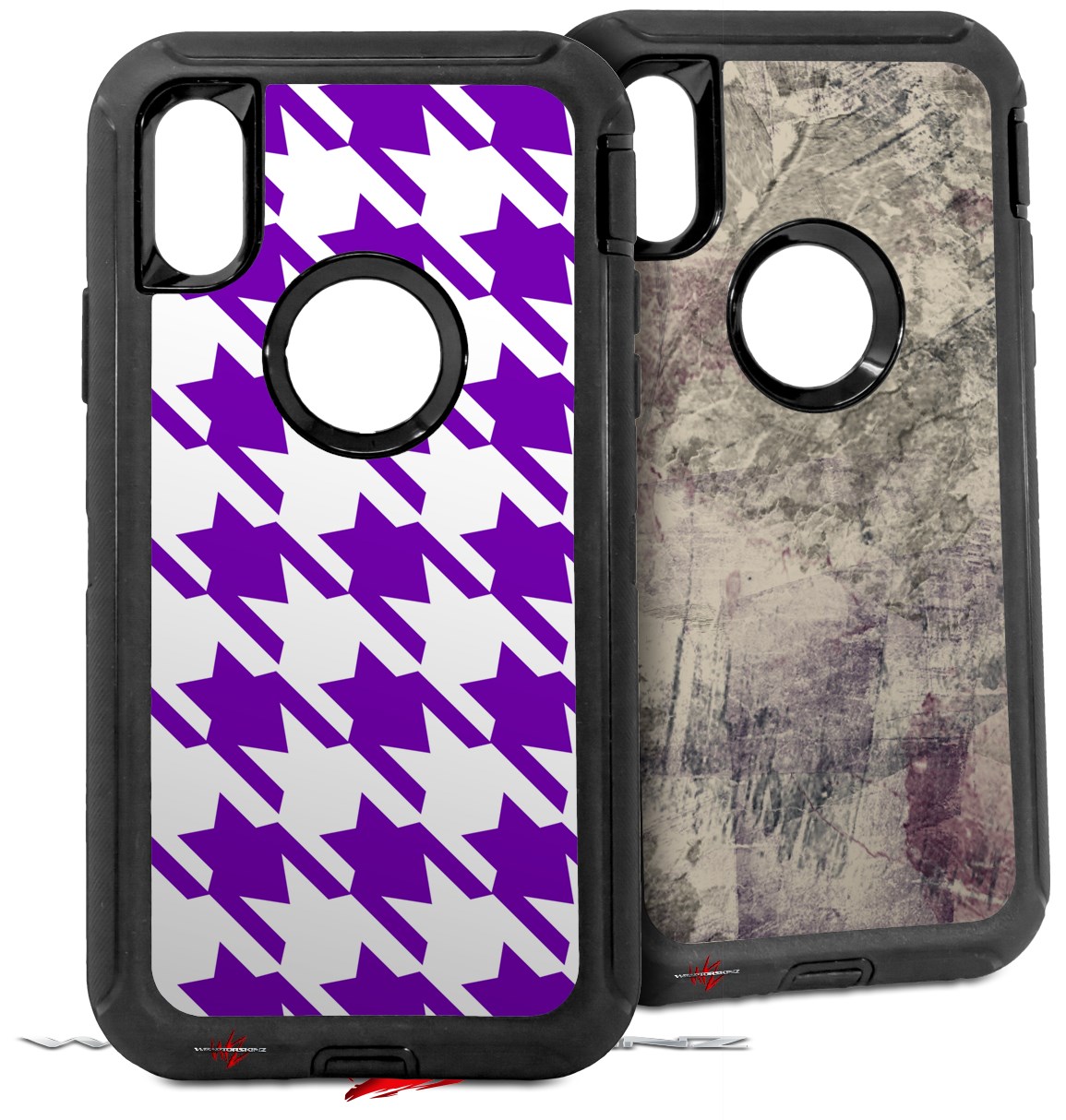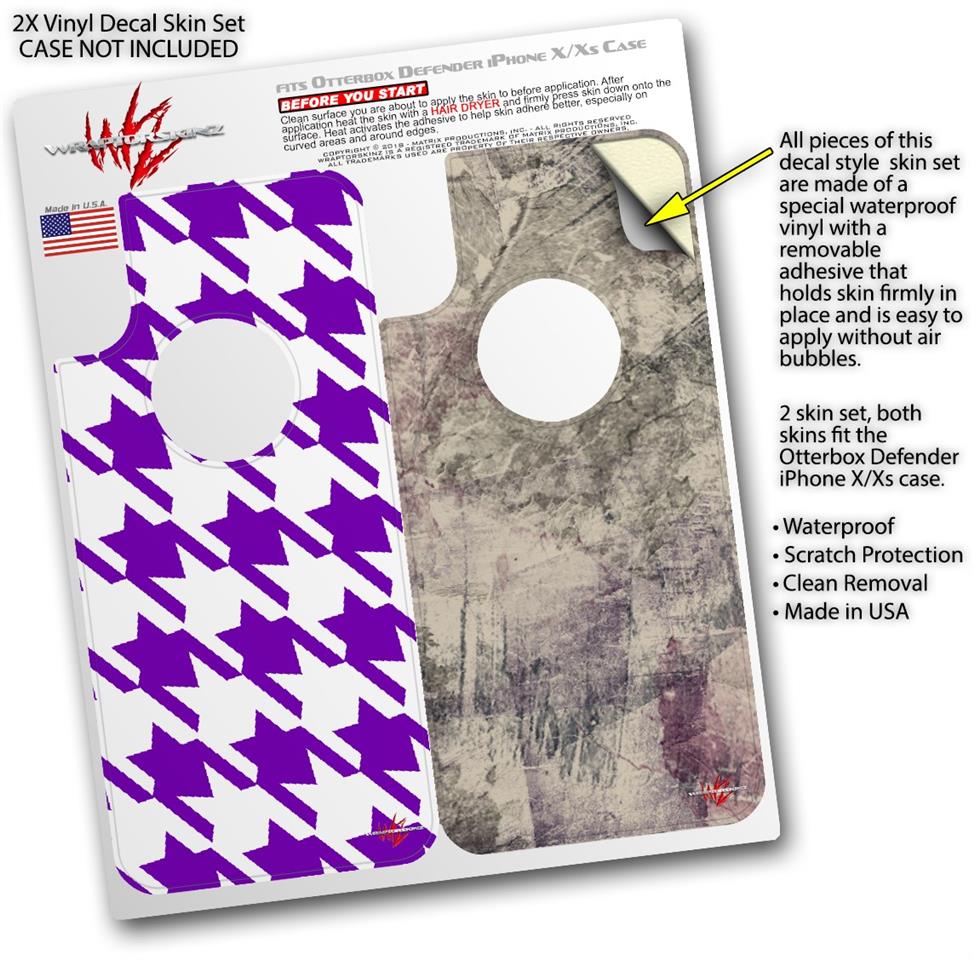 2x Decal style Skin Wrap Set compatible with Otterbox Defender iPhone X and Xs Case - Houndstooth Purple (CASE NOT INCLUDED)