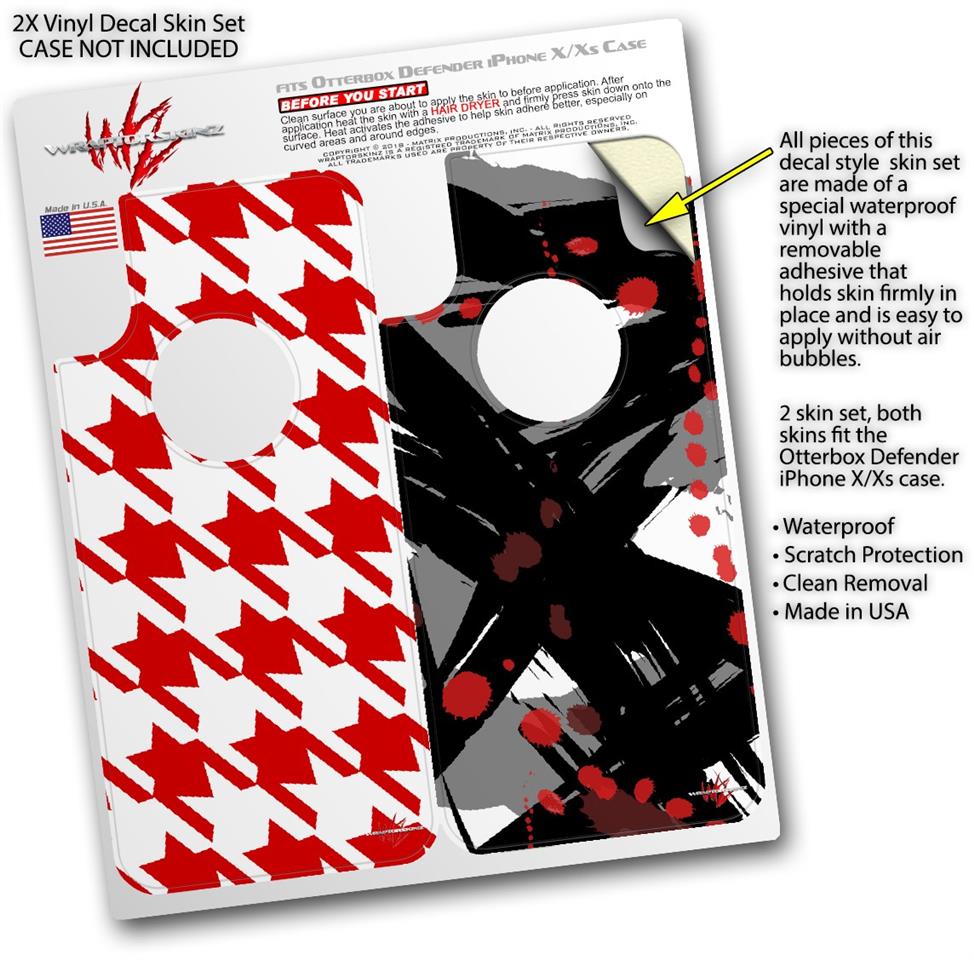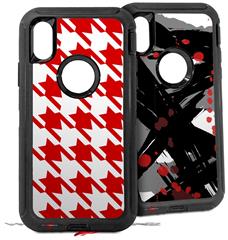 2x Decal style Skin Wrap Set compatible with Otterbox Defender iPhone X and Xs Case - Houndstooth Red (CASE NOT INCLUDED)