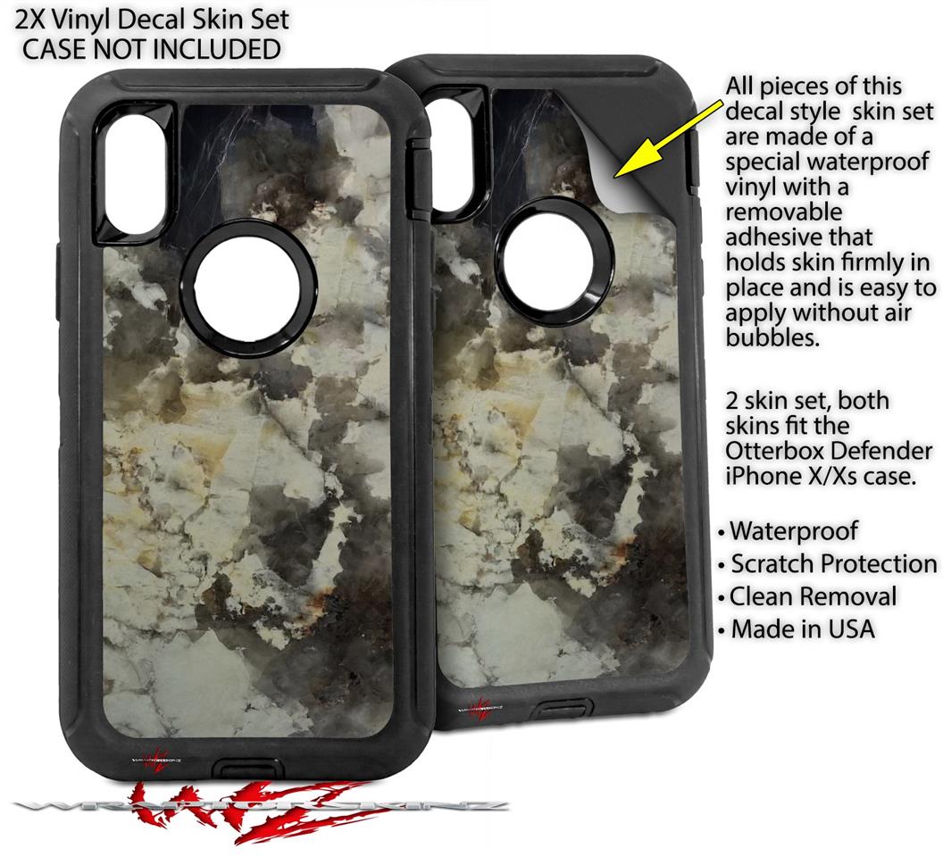2x Decal style Skin Wrap Set compatible with Otterbox Defender iPhone X and Xs Case - Marble Granite 04 (CASE NOT INCLUDED)