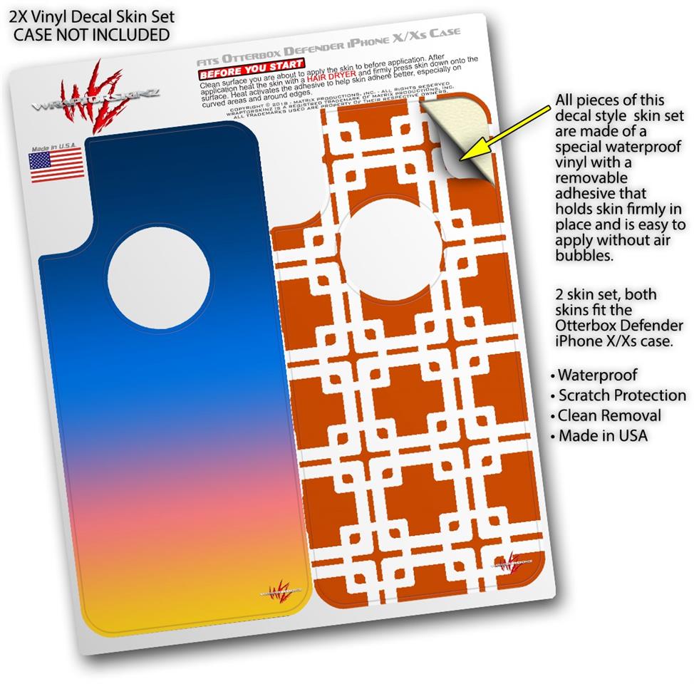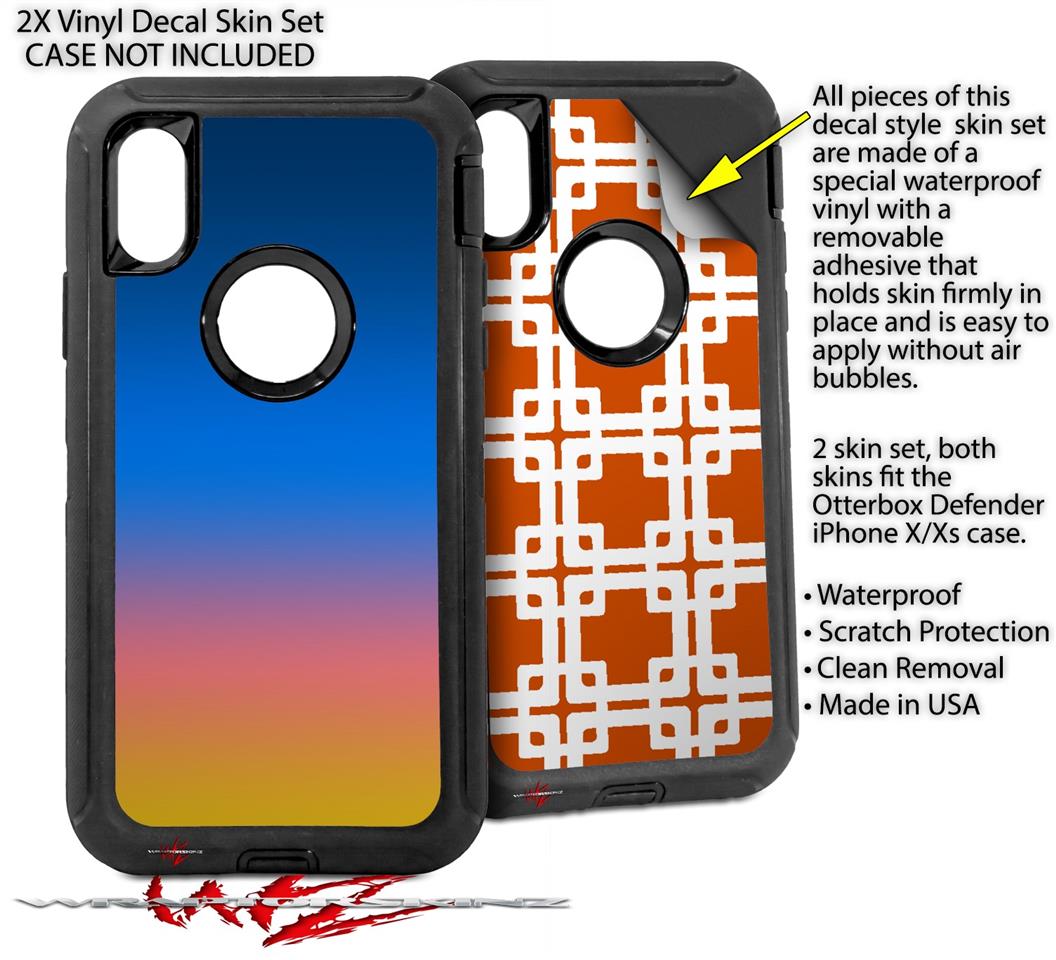 2x Decal style Skin Wrap Set compatible with Otterbox Defender iPhone X and Xs Case - Smooth Fades Sunset (CASE NOT INCLUDED)